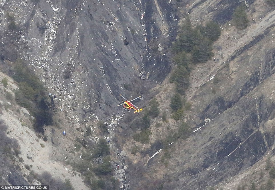 | Lực lượng cứu hộ không tìm thấy dấu vết người còn sống từ trực thăng. Hiện trường tai nạn cho thấy 150 hành khách và thành viên phi hành đoàn dường như không có cơ hội sống sót. Ảnh: Visual |