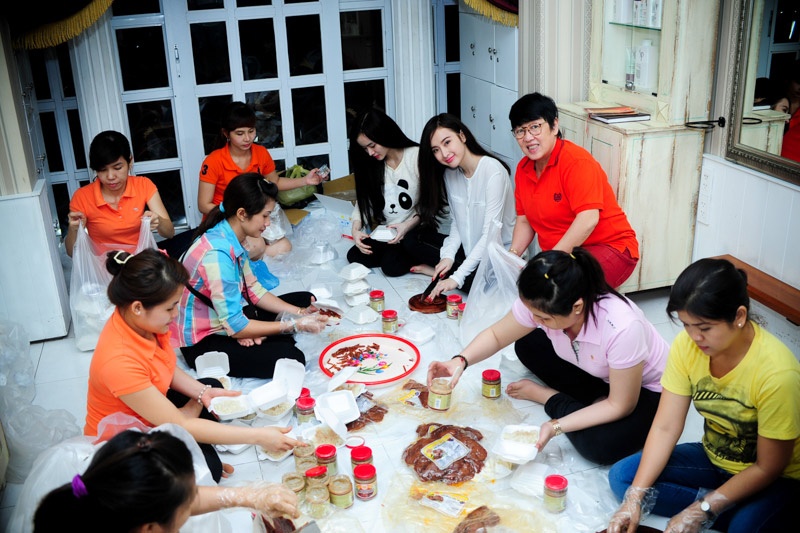 | Nữ diễn viên và em gái đích thân chuẩn bị những phần cơm từ chiều để buổi tối có thể mang đi phân phát cho mọi người. |