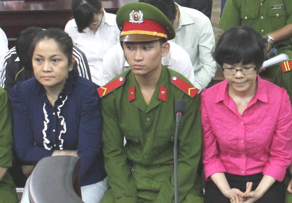 | Mỹ Hạnh và Huyền Như (phải) tại toà. |