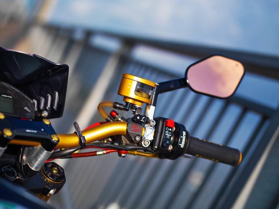 | Cùm tay thắng Brembo được kết hợp với bình dầu Rizoma. |