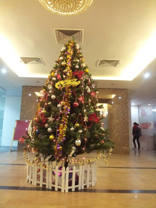 | Cây thông Noel trước tiền sảnh công ty HSP được nhân viên tự tay trang trí. |
