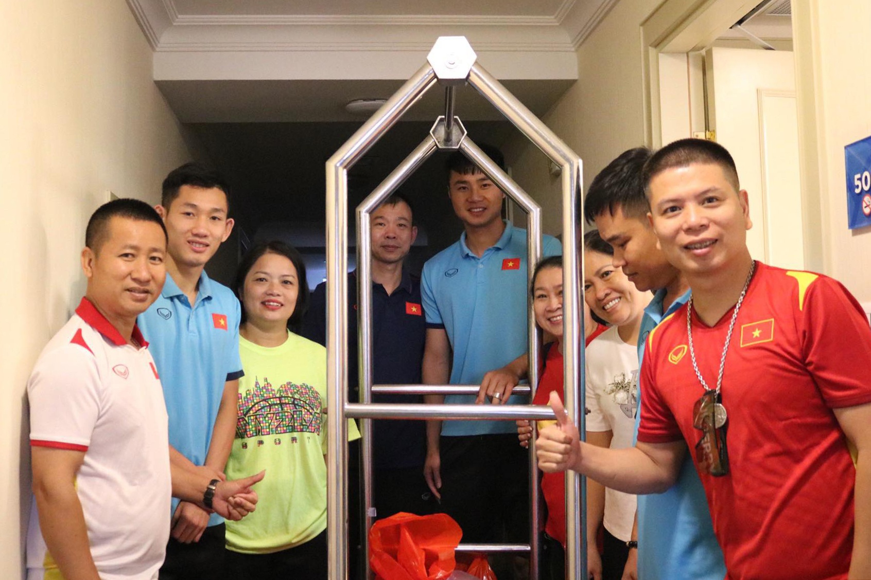 Trước đó, sáng 5/6, ngay khi đến Uzbekistan, các cổ động viên này đã có mặt tại khách sạn, "tiếp tế" lương thực cho đội tuyển. Nhiều món đặc sản như bánh chưng, giò, tôm rang, mắm tép, tương ớt, nước mắm... được trao tận tay cầu thủ.