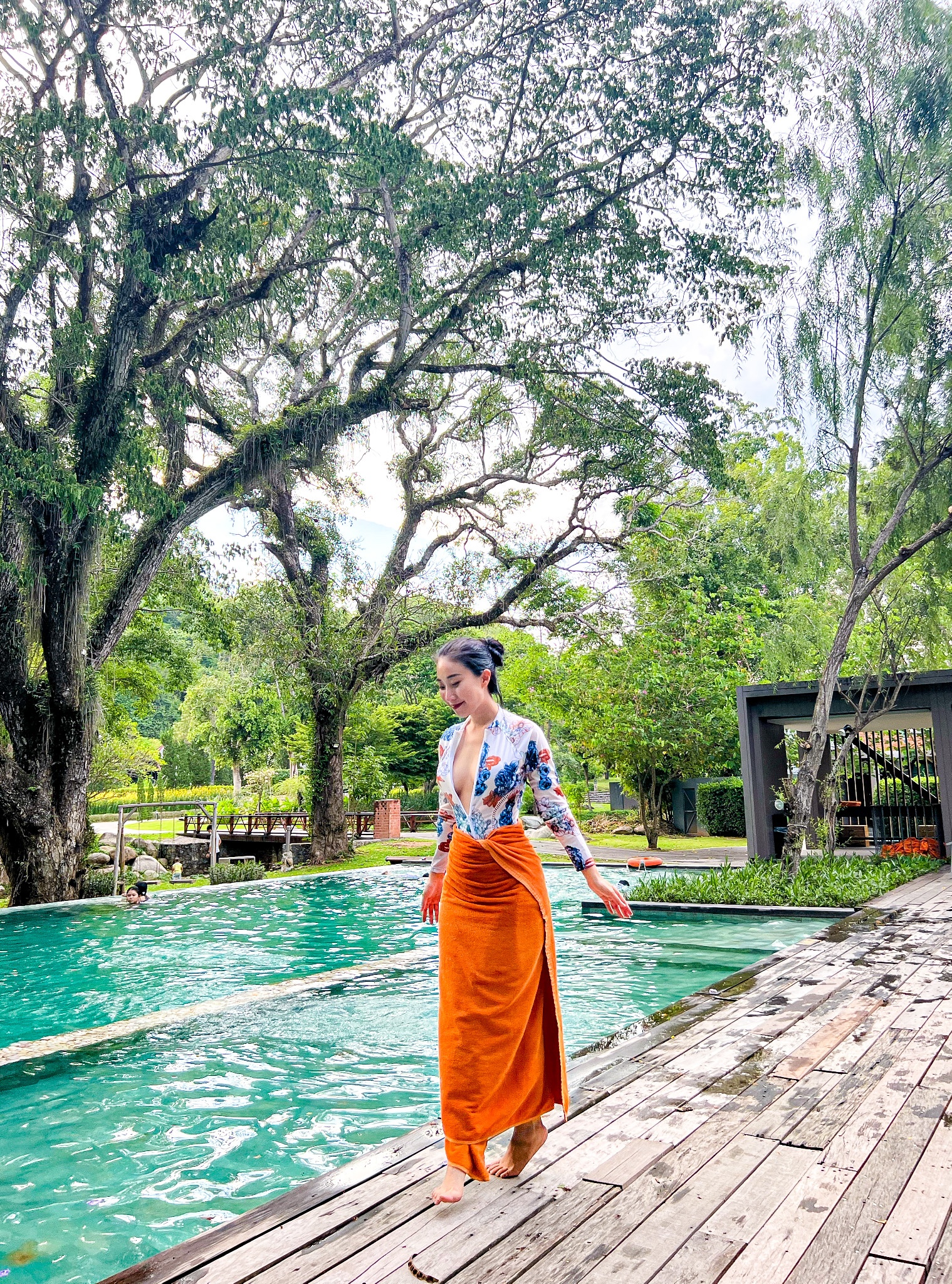 Tôi chọn ở 2 đêm tại Flora Creek Chiang Mai, một khách sạn nằm sâu trong rừng nên không khí trong lành. Ở đây, tôi có cảm giác gần gũi thiên nhiên, thơ mộng vì xung quanh nhiều cây cối, hoa cỏ. Tôi thích đạp xe quanh khu vực này để tận hưởng kỳ nghỉ.