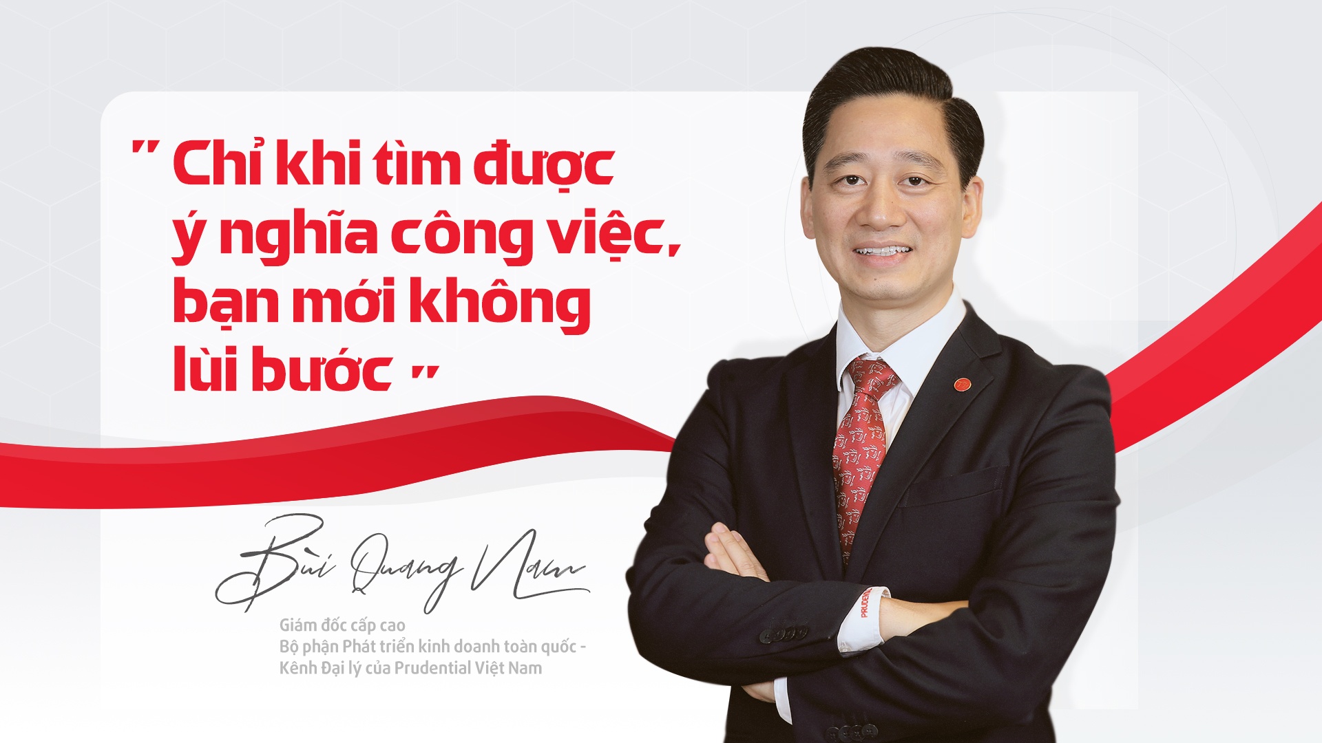 Bước chân vào ngành bảo hiểm từ vị trí nhân viên, anh Bùi Quang Nam - Giám đốc cấp cao bộ phận phát triển kinh doanh kênh đại lý, khối kinh doanh của Prudential - nhiều lần đối mặt trước thách thức của nghề “làm dâu trăm họ”. Với sự nỗ lực không ngừng, anh Nam cùng đội ngũ tư vấn viên, nhân viên đóng góp quan trọng cho những bước đi tiên phong và sự thành công của công ty.