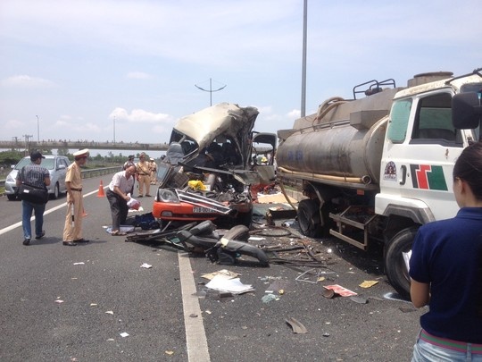 | Tai nạn xảy ra giữa xe khách và xe bồn tưới nước trên cao tốc TP.HCM - Trung Lương khiến 7 người thiệt mạng. |