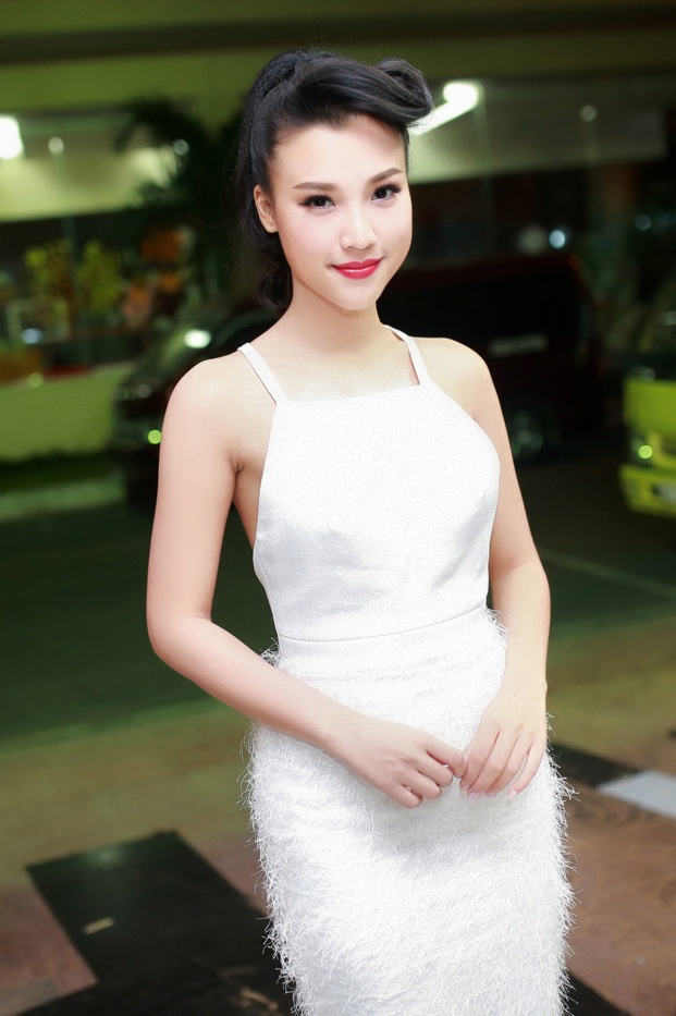 | Hoàng Oanh giản dị mà cuốn hút với bộ đầm trắng hở vai. Cô kết hợp phụ kiện là hoa tai dài làm điểm nhấn. Mái tóc búi cao cũng góp phần làm sáng gương mặt của Á hậu Phụ nữ Việt Nam qua ảnh 2012 |