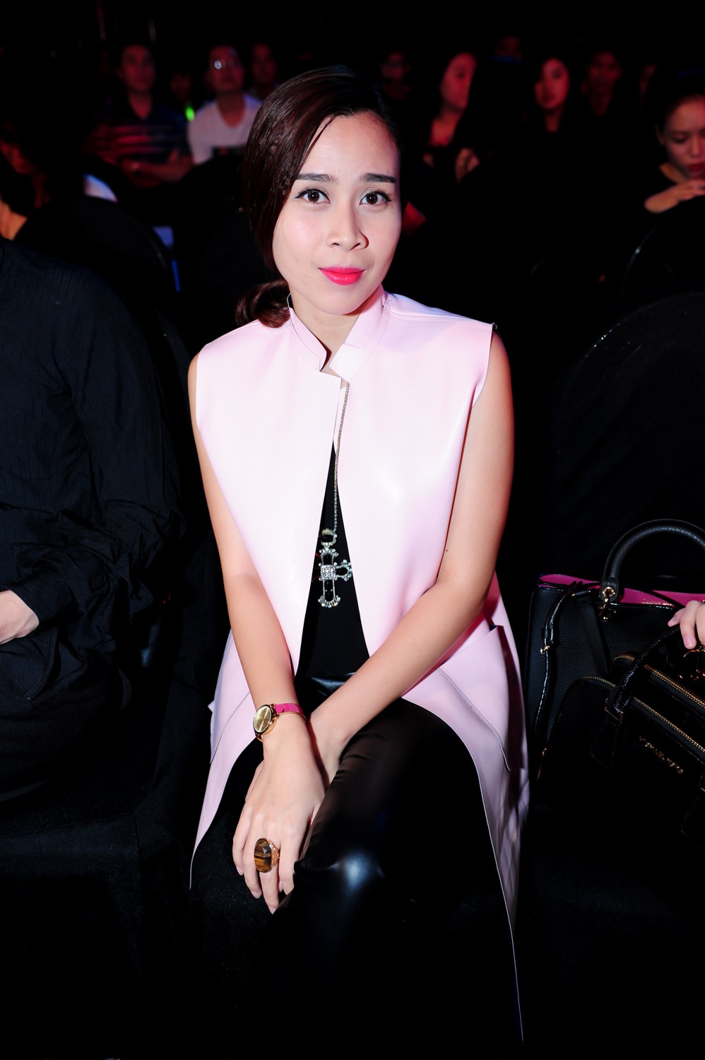 | Quế Vân mặc đồ cá tính, đến ủng hộ bạn thân Hồ Ngọc Hà ngồi ghế giám khảo. |
