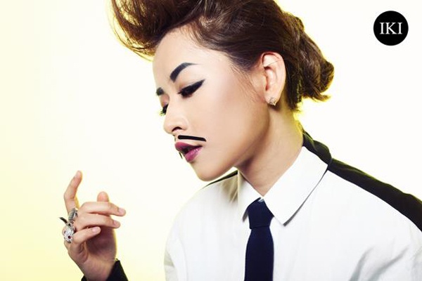 | Trong bộ ảnh, Chi Pu được hóa trang thành một người đàn ông lịch lãm, đào hoa vớ bộ ria mép dài ngoằng. |