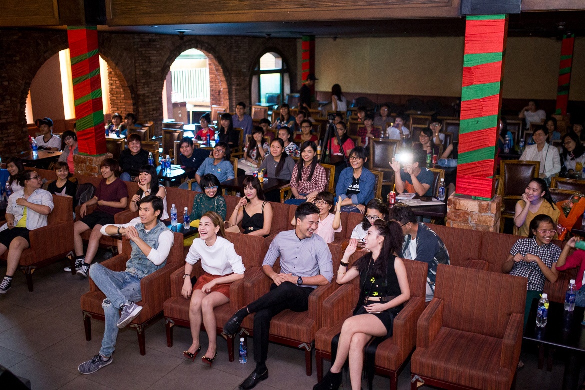 | Tại buổi giao lưu, các diễn viên đối mặt với nhiều thử thách từ fan cũng như tham gia nhiều trò chơi tương tác hào hứng. Chi Pu và các bạn diễn được yêu cầu nhảy Harlem Shake trên sân khấu. |