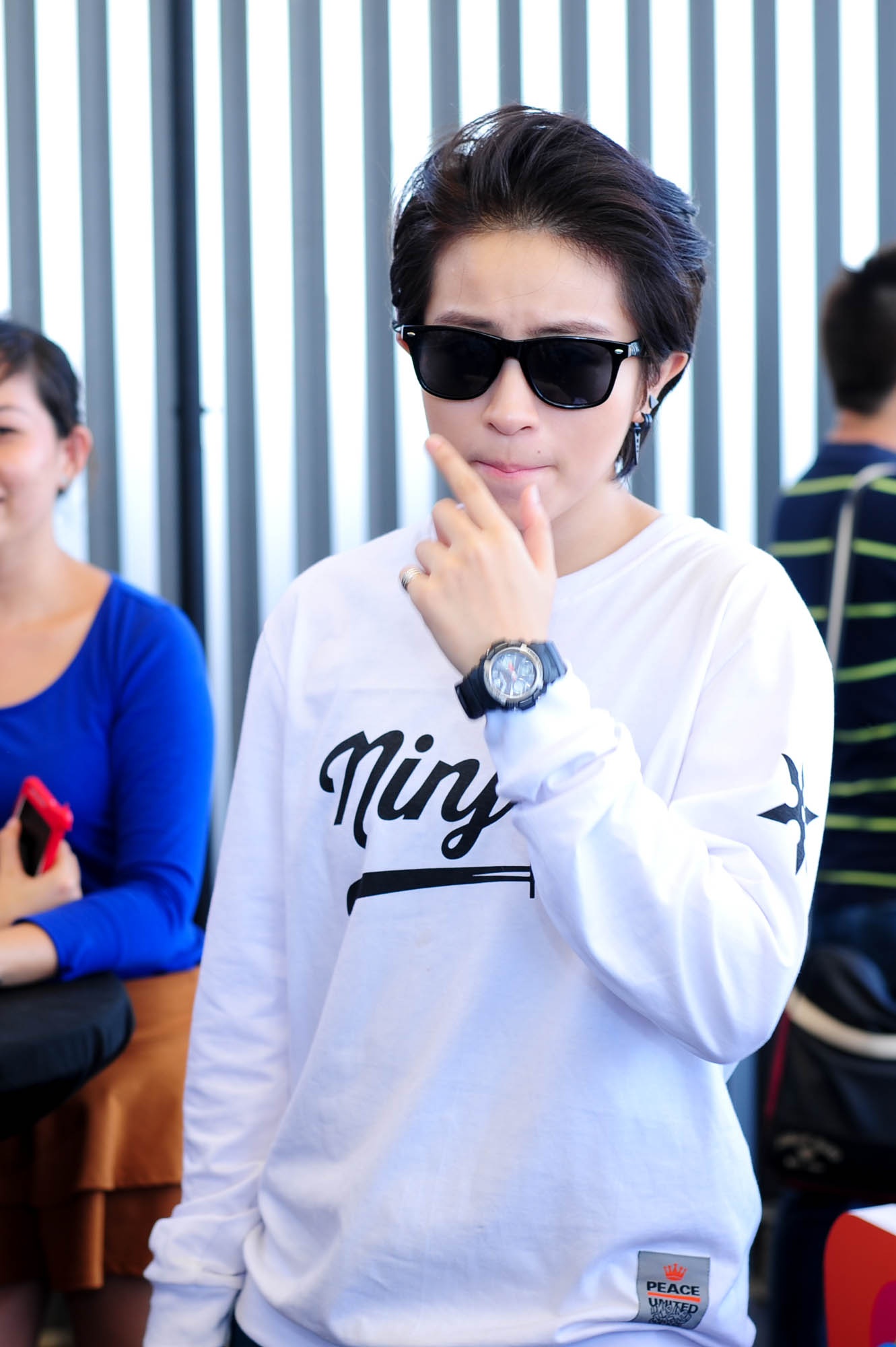 | Bạn gái của Ngô Kiến Huy tự tin diện mốt không quần. |