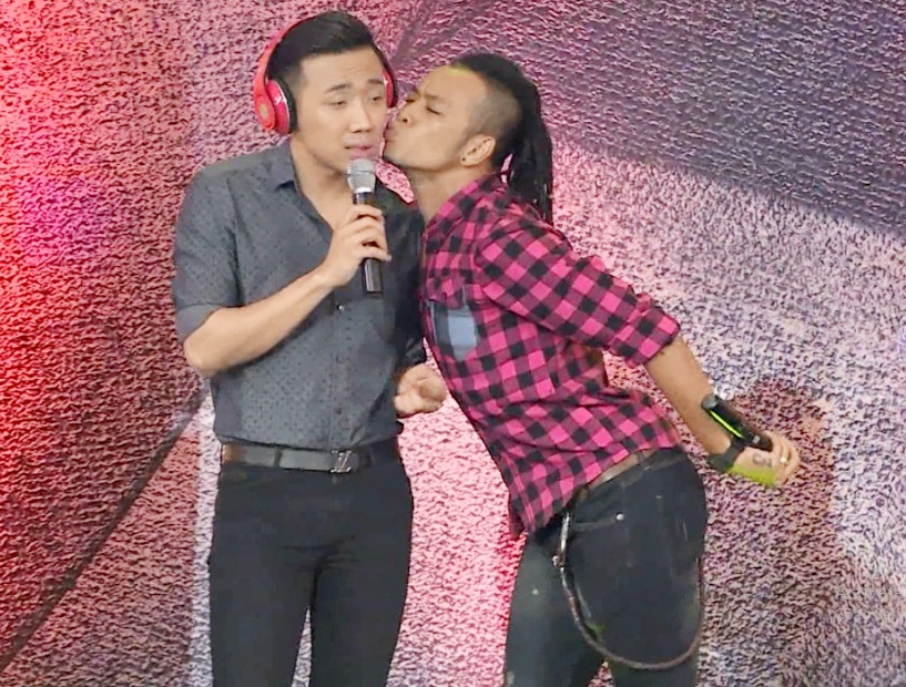 Ở thử thách ca sĩ, nam nghệ sĩ trẻ đón chào khách mời Trấn Thành với ca khúc Lại gần hôn anh. Vì bài hát có tính hình tượng cao, lại nhiều chi tiết khó nên anh đã nghĩ chiêu “một cú ăn ngay” khi yêu cầu đàn anh lại gần và hôn vào má. MC điển trai quá bất ngờ trước hành động táo bạo của đàn em nên lấy tay che mặt bởi “ghê quá”. Sau giây phút trấn tĩnh, Trấn Thành “chỉ trích” Hoàng Phi đã “lợi dụng trò chơi để tư tình cá nhân”.