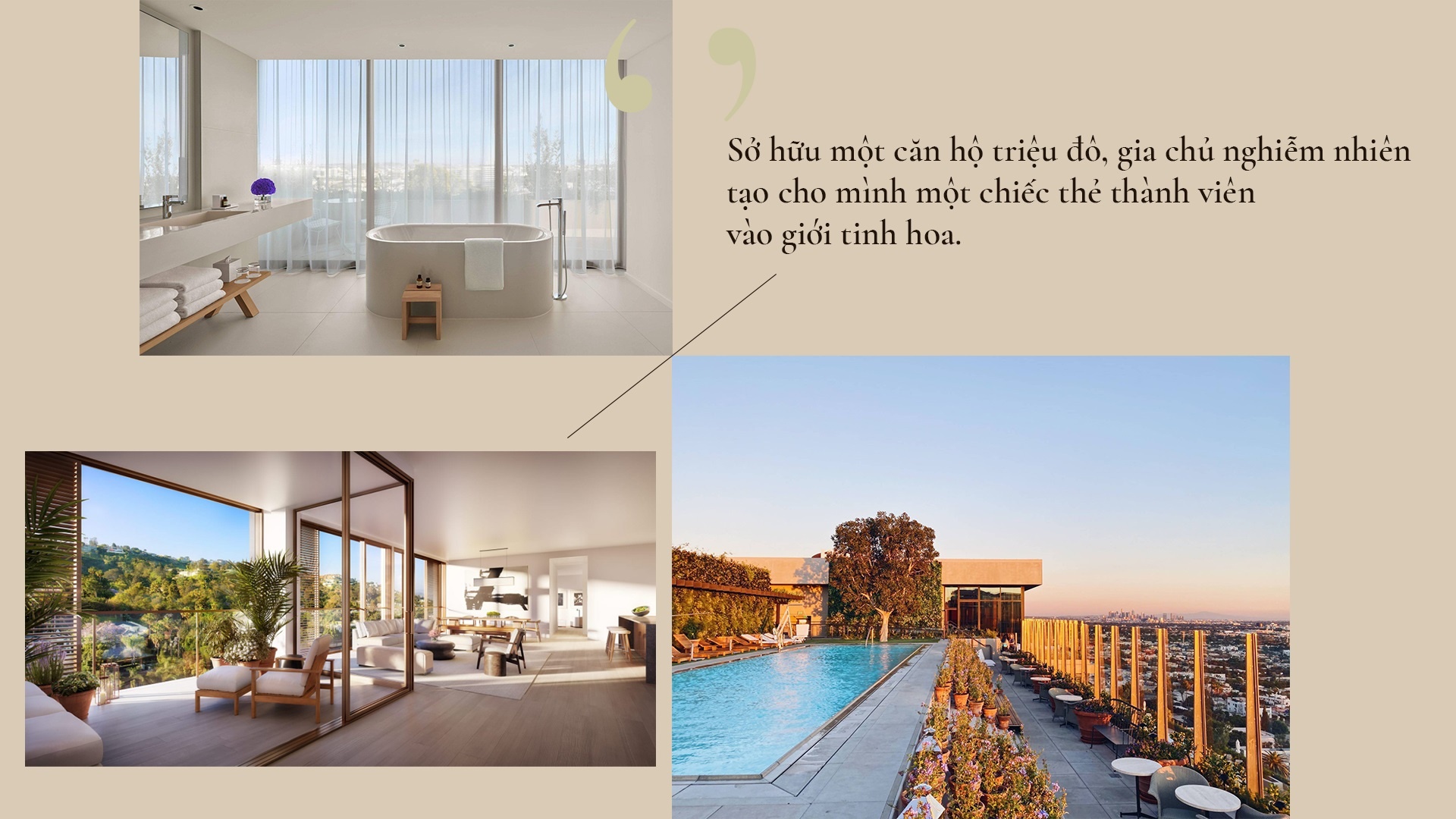 Ngoài việc nâng tầm địa vị của bản thân, chủ sở hữu căn hộ hàng hiệu có thể mở rộng mối quan hệ với hàng xóm là những đại gia cùng sở thích, lĩnh vực kinh doanh, từ đó dễ dàng phát triển nhiều cơ hội làm ăn mới. Khu căn hộ Edition giữa lòng Hollywood là một ví dụ, với đa số cư dân đều đến từ giới tinh hoa trong ngành truyền thông và điện ảnh. Sinh sống tại đây, cư dân có thể bắt gặp nhà sản xuất phim, đạo diễn hay diễn viên hạng A của kinh đô điện ảnh.
