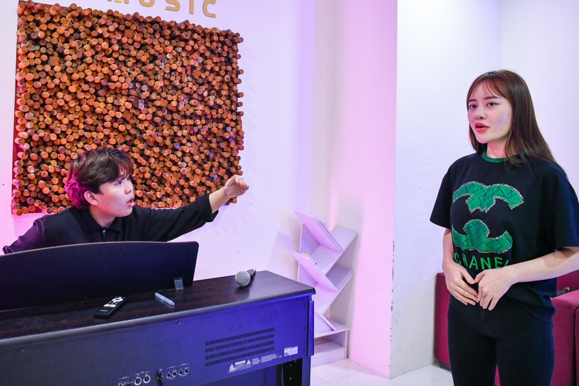 | Có mặt tại trung tâm dạy nhạc ở quận Thanh Xuân (Hà Nội), Kim Anh (sinh năm 1998, quận Nam Từ Liêm) bắt đầu buổi học bằng những bài luyện thanh, khởi động cơ bản dưới sự hướng dẫn của giảng viên. Dù mới là buổi học thứ 2 trong khóa học 1-1 kéo dài 12 buổi, cô khá vui khi nhận thấy mình đã có những tiến bộ như bắt đầu biết ngắt nghỉ đúng nhịp hơn, lấy hơi sao cho đúng. |