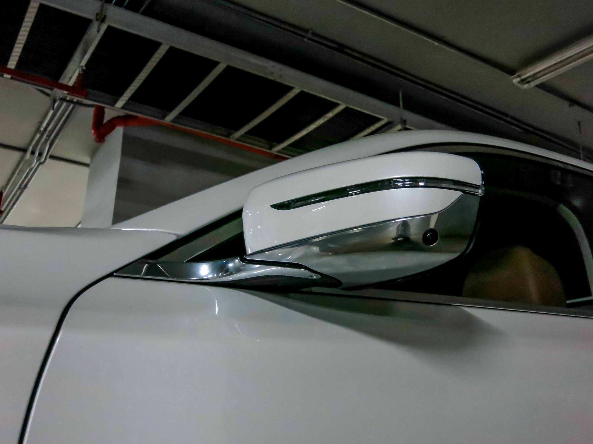 | Chất liệu chrome được sử dụng nhiều phần ngoại thất, ngay cả gương chiếu hậu cũng được mạ chrome. Trên gương tích hợp camera và cảm biến giúp đỗ xe dễ dàng hơn. |