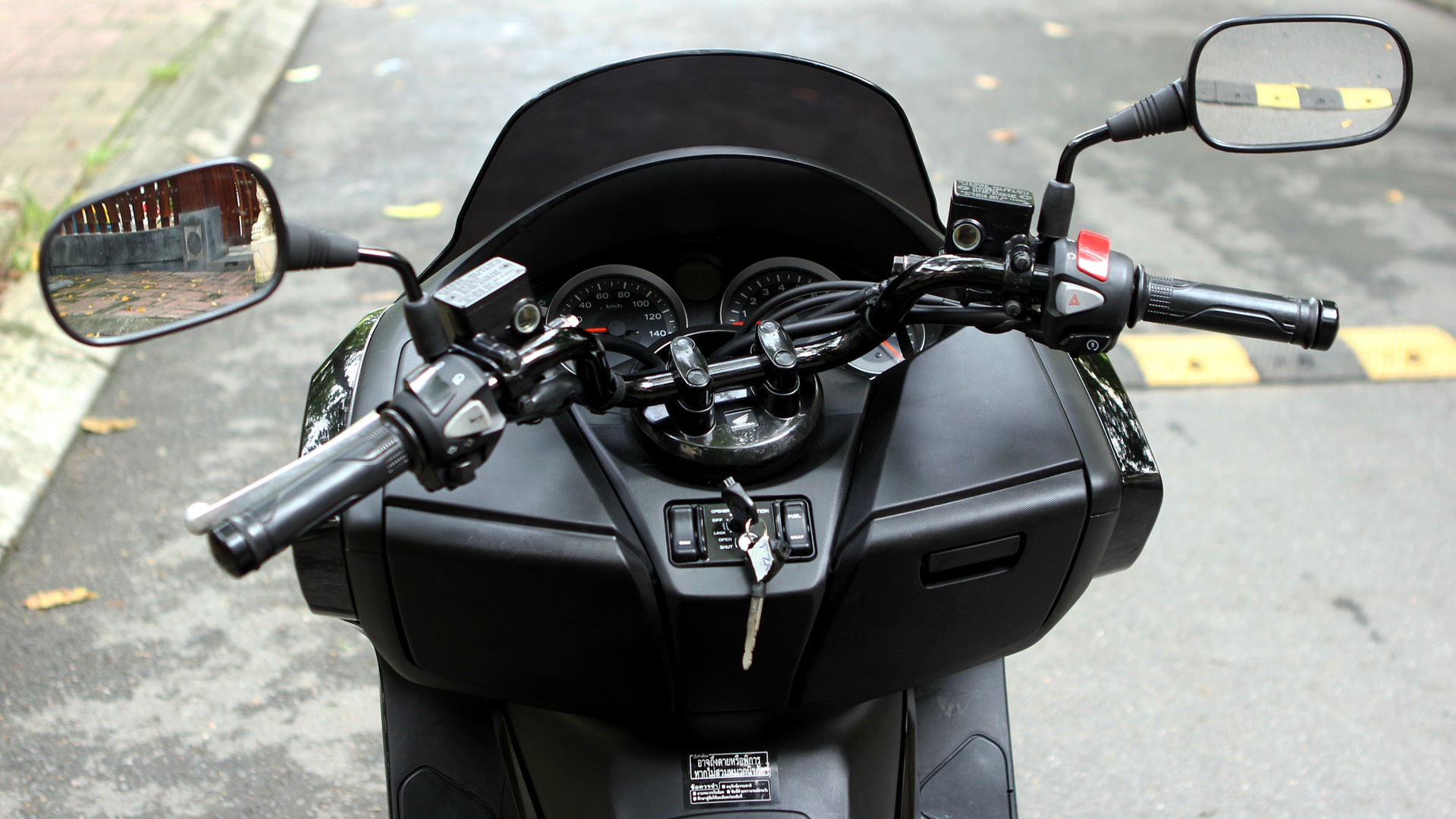 | Các nút bấm chức năng bên trái không có sự khác biệt so với những mẫu xe ga phổ thông khác. Phía trước có thêm nút bấm passing. |