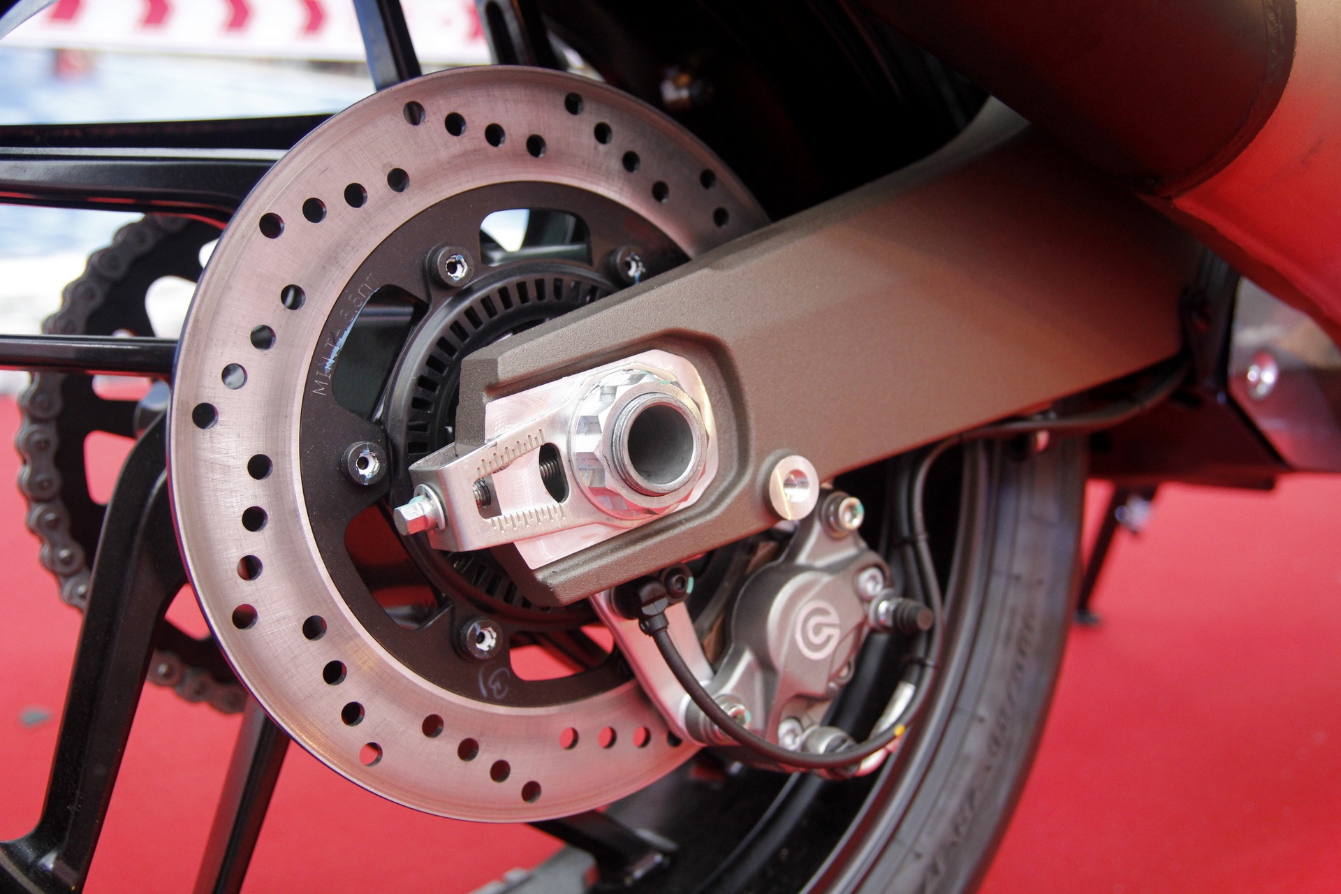| Phanh đĩa đơn phía sau đường kính 245 mm, kẹp phanh Brembo 2 piston. |