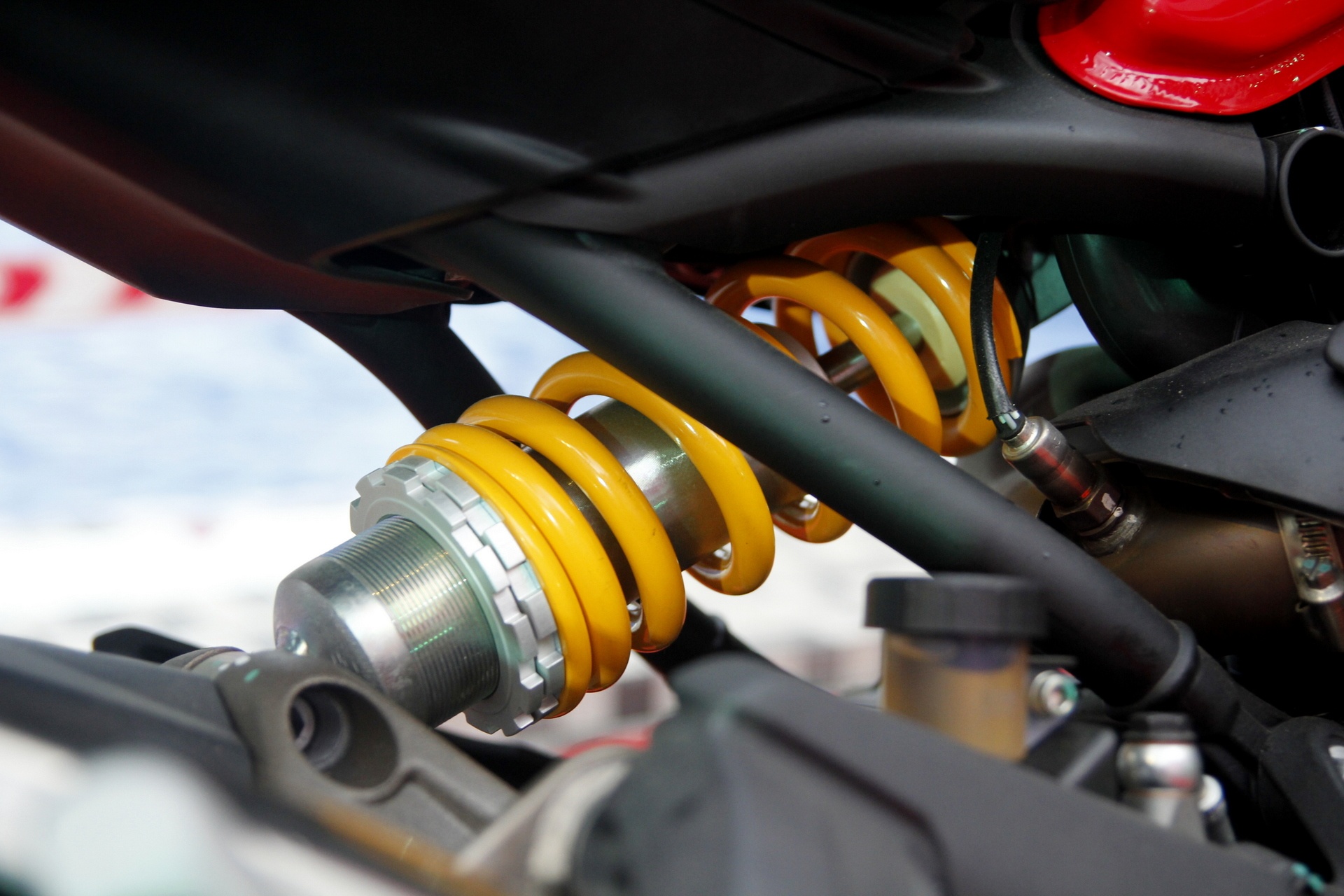 | Phuộc sau hiệu Sachs dạng monoshock kết hợp với gắp đôi bằng nhôm đúc, có thể điều chỉnh độ cao. |