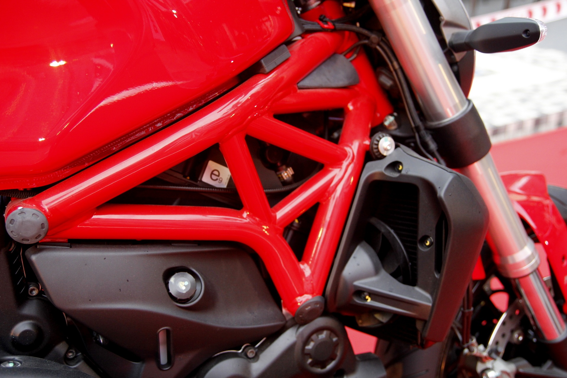| Hệ thống khung sườn chính dạng ống, kết nối trực tiếp với máy giúp giảm 1,23 kg so với 796, đồng thời tăng độ cứng xoắn. Ngoài ra, xe còn được bố trí khung phụ gắn với máy. Những nỗ lực giảm cân khiến Monster 821 chỉ nặng 179,5 kg khi chưa đổ xăng. |