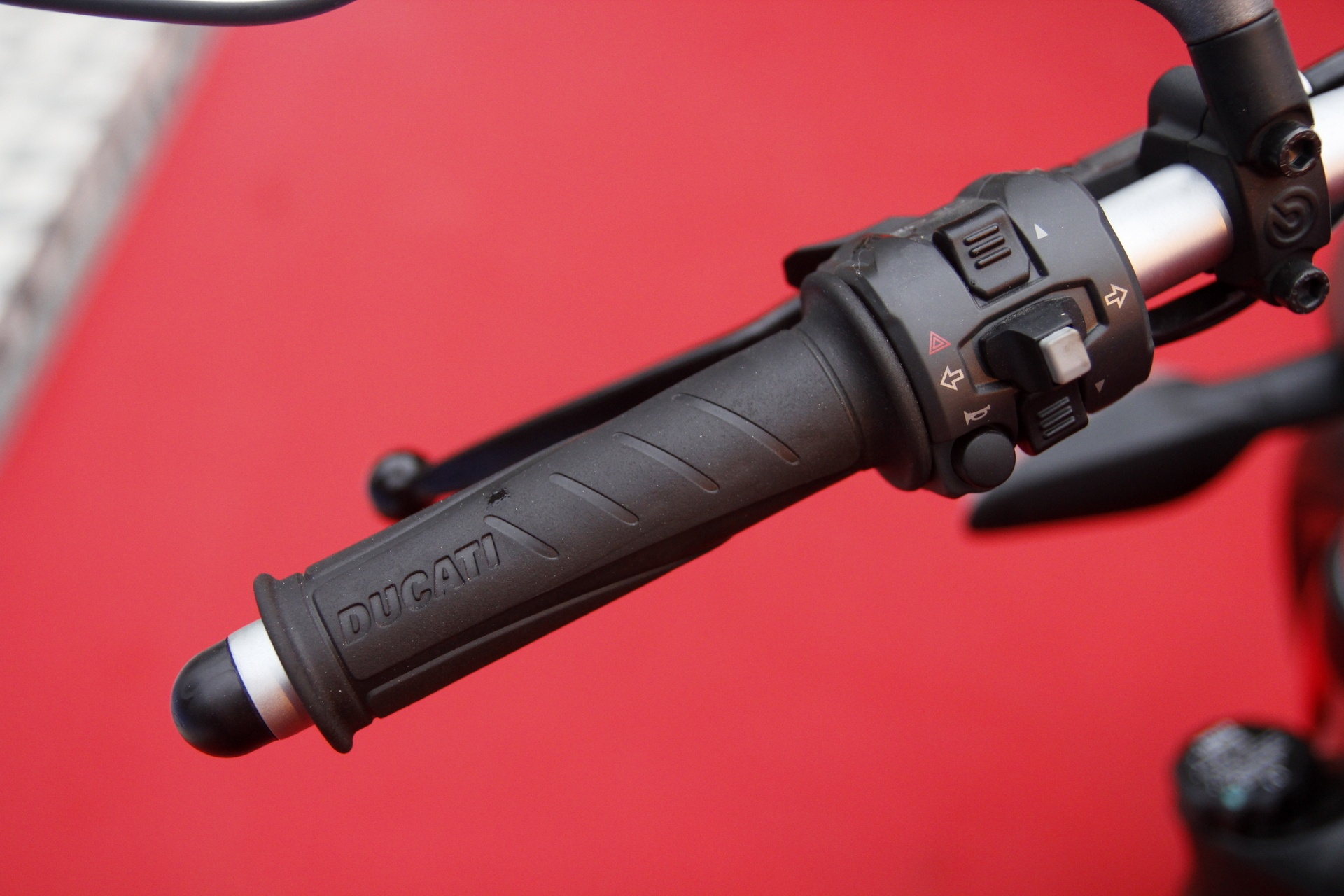 | Tay nắm bên trái khá đơn giản bao gồm nút điều chỉnh chế độ chạy và công tắc xi-nhan, còi. |