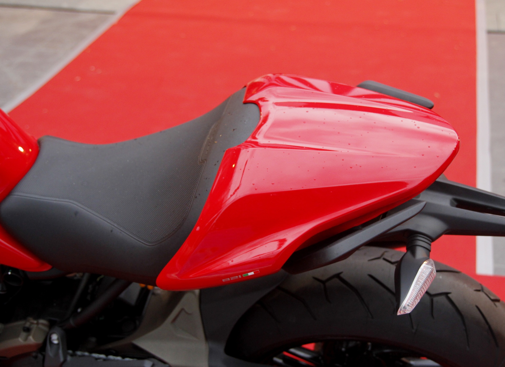 | Yên xe có thể điều chỉnh độ cao từ 785 tới 810 mm để phù hợp với những người có chiều cao khác nhau, trong khi yên xe trên 796 là 800 mm và không thể điều chỉnh. Tay nắm sau được gắn liền vào yên là thiết kế mới. Trên bản màu đỏ có trang bị ốp yên solo màu đỏ, trong khi bản màu đen không có tùy chọn này. |
