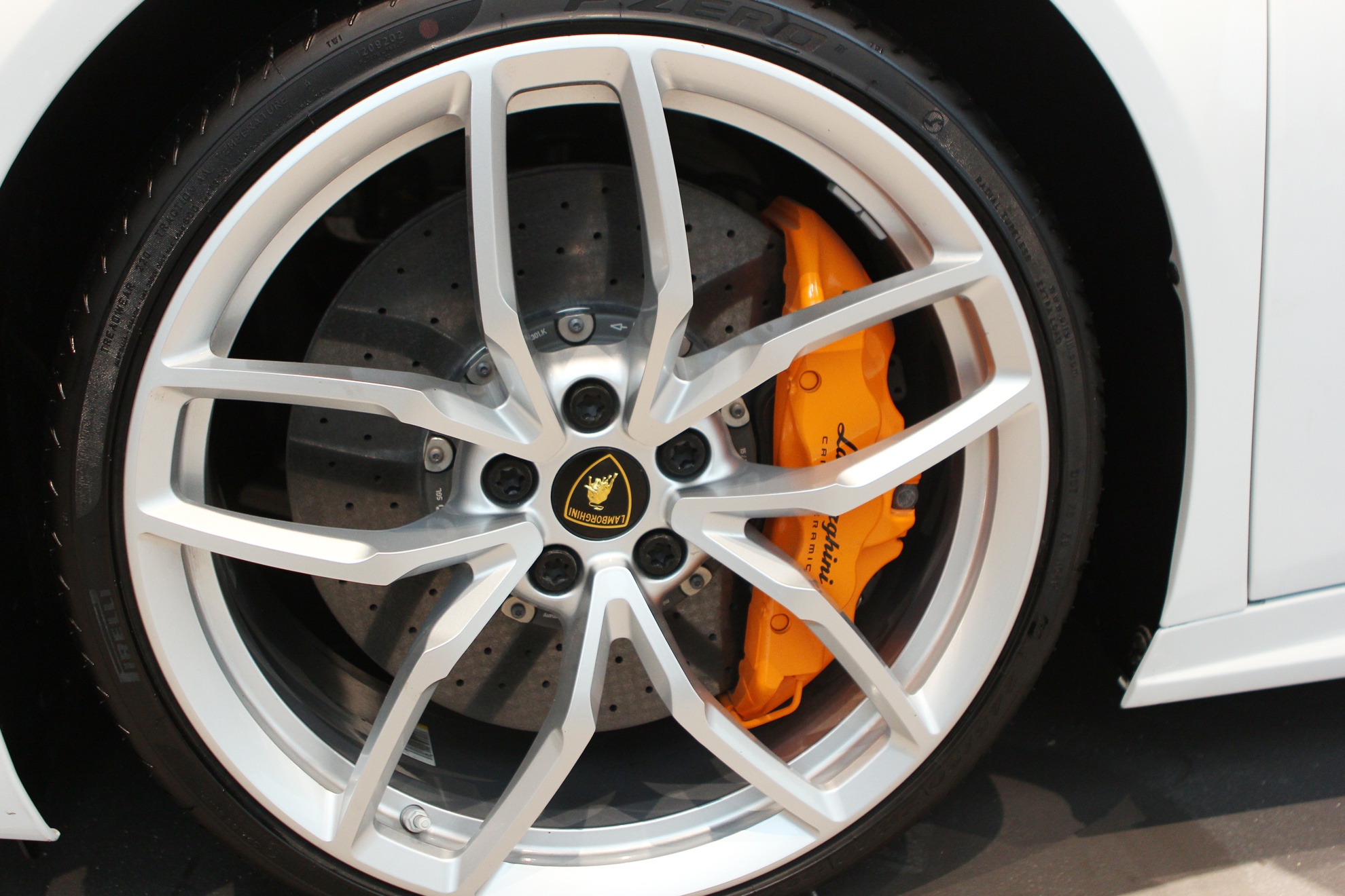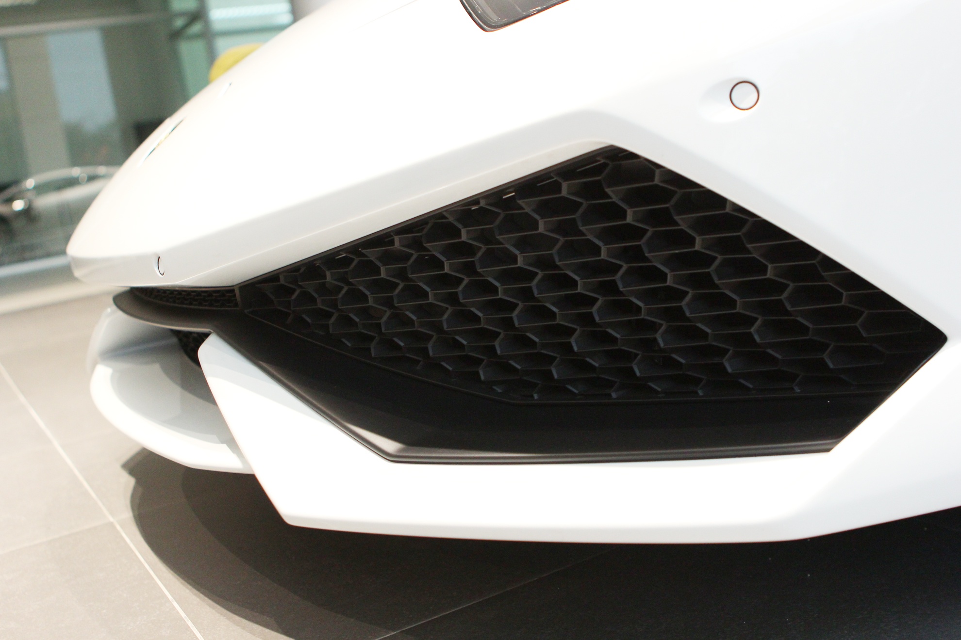 Huracan thứ 2 với ngoại thất màu trắng có một số trang bị khác với bản màu xám trước đó như la-zăng thiết kế 5 chấu kép kiểu chữ V, ngàm phanh chính hãng màu cam.