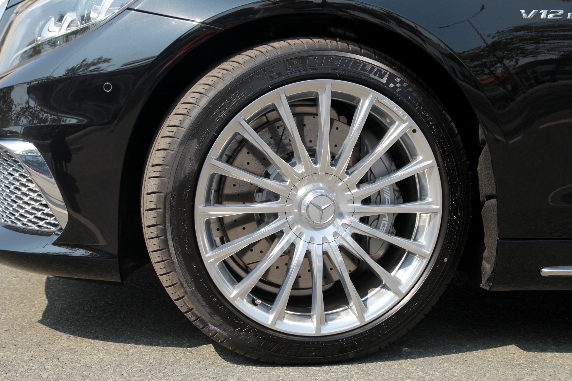| S65 được trang bị bộ vành hợp kim nhôm đa chấu, đường kính 20 inch. Bên trong là kẹp phanh hiệu suất cao của AMG. |