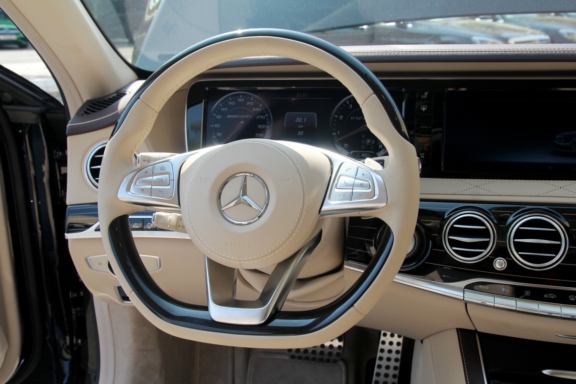 Xe được tích hợp hệ thống lái thể thao AMG với trợ lực biến thiên theo tốc độ. Cần số điều khiển điện phía sau vô-lăng tích hợp lẫy chuyển số bán tự động. Thông tin hành trình được hiển thị trên kính chắn gió (HUD).