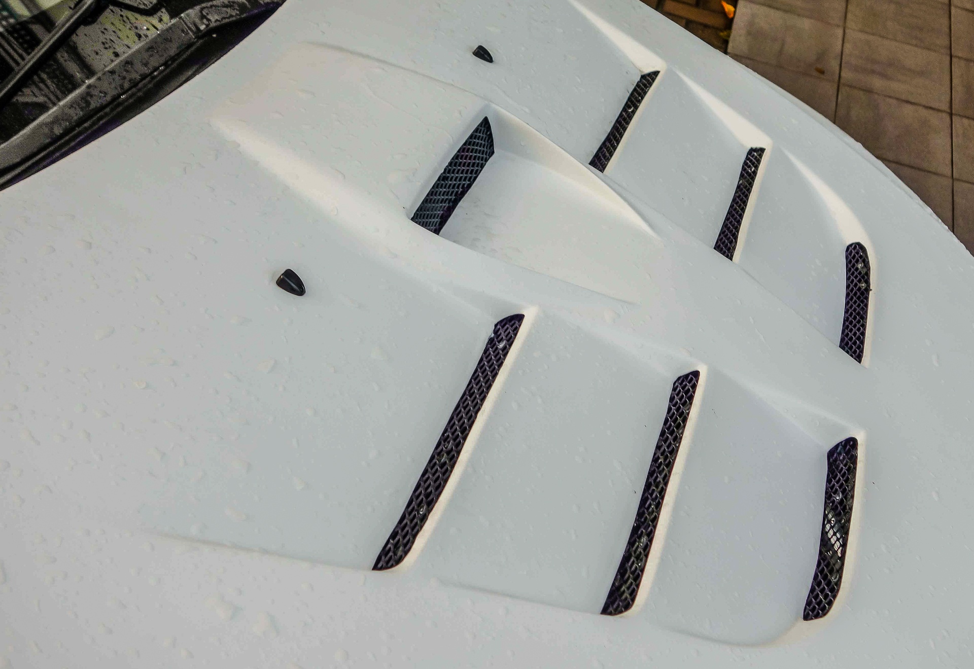 | Nắp ca-pô cũng được cắt nhiều khe tản nhiệt khá hầm hố.