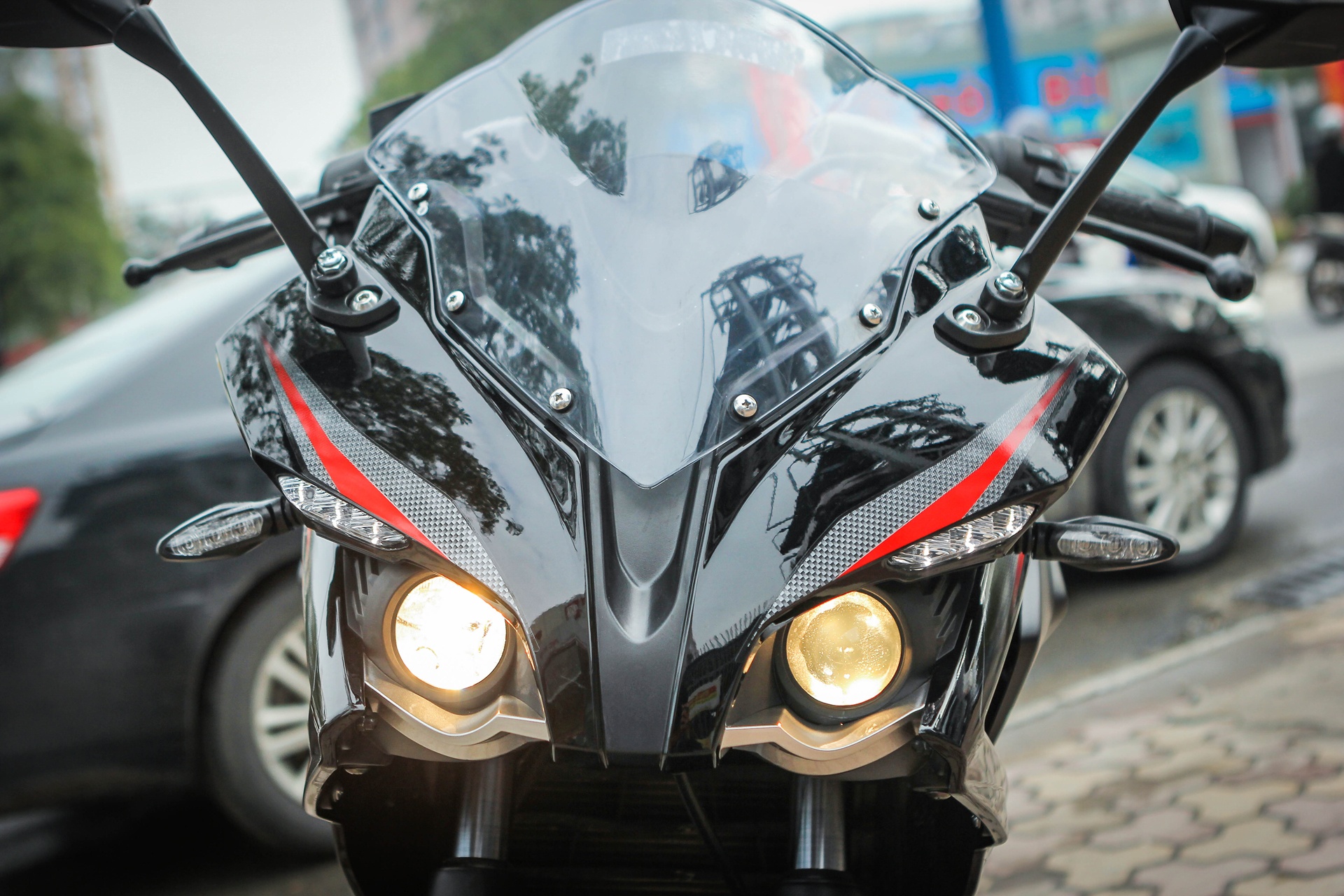 | Phần đầu xe thiết kế hầm hố, dữ dằn với cặp đèn pha dạng projector, đèn LED chạy ban ngày được bố trí ngay phía trên. Tương tự nhiều mẫu sportbike khác, RS200 cũng được trang bị kính chắn gió lớn ở đầu xe. |