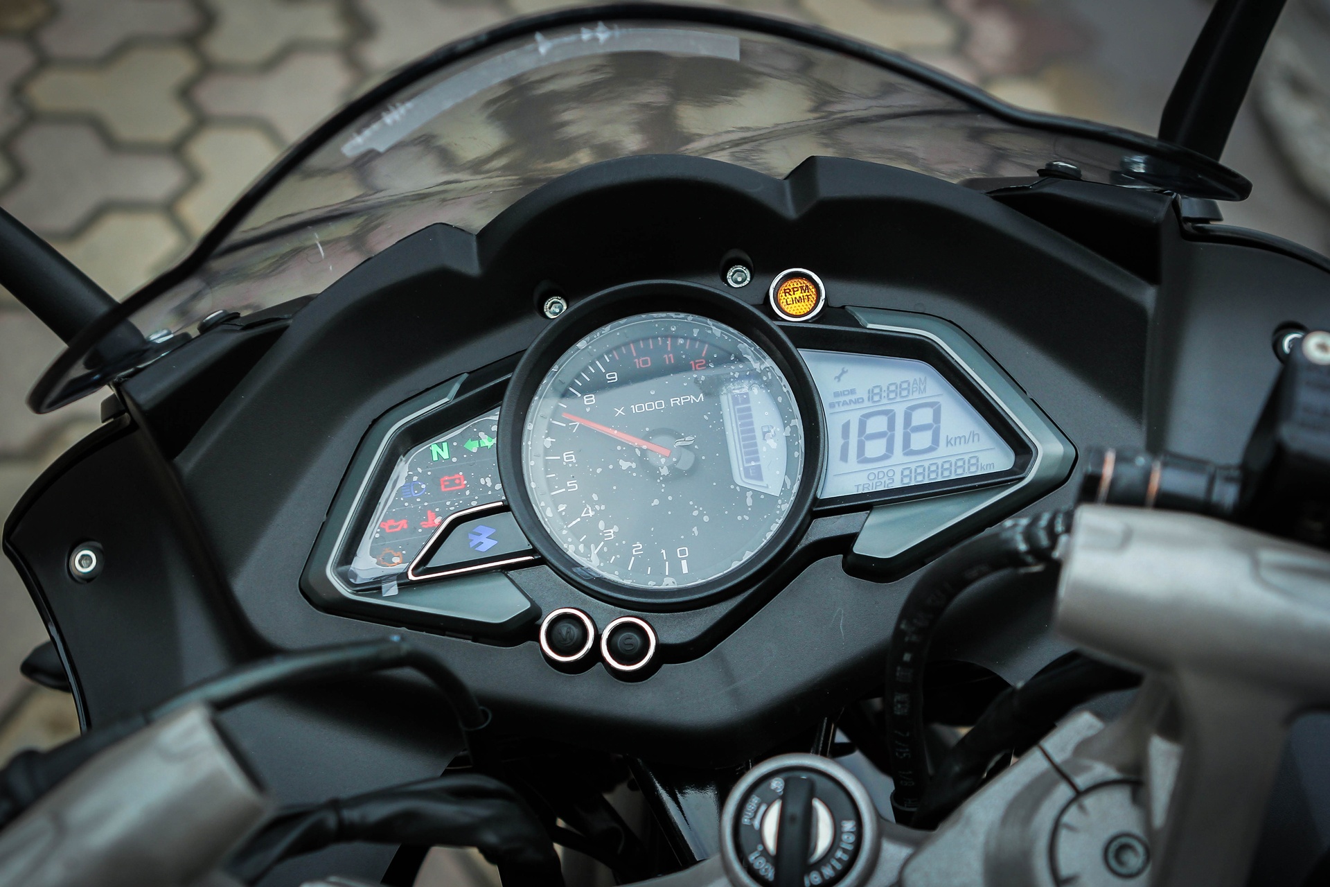 | Cụm đồng hồ lớn, kết hợp analog và điện tử. Tay lái của xe dạng clip on. |