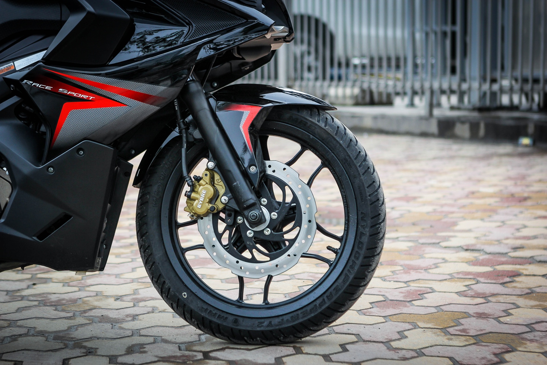 100/80-17. Trang bị an toàn phía trước là phanh đĩa đường kính 300 mm, kẹp phanh