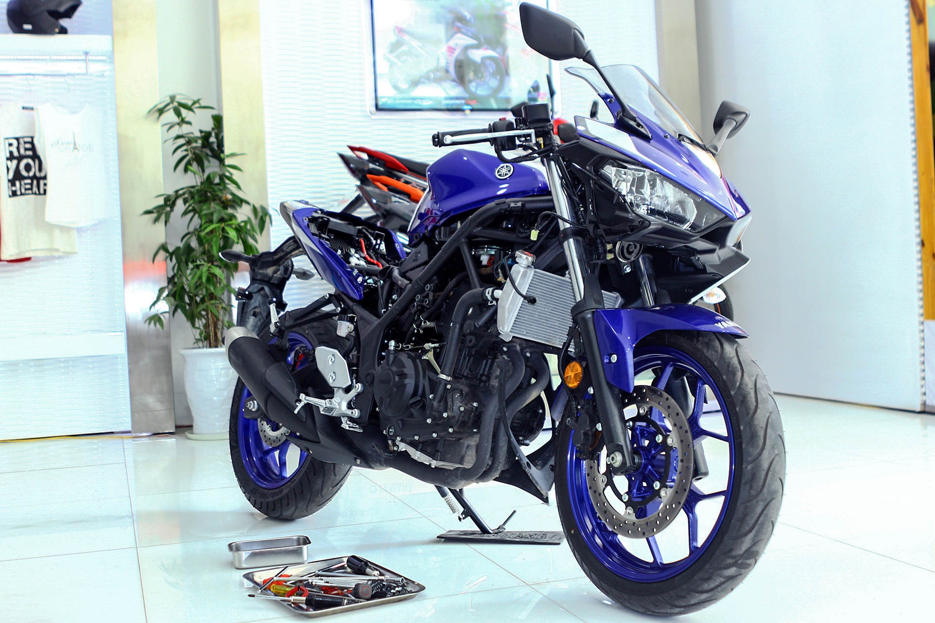 Bộ dụng cụ để tháo dàn vỏ của YZF-R3 khá đơn giản.