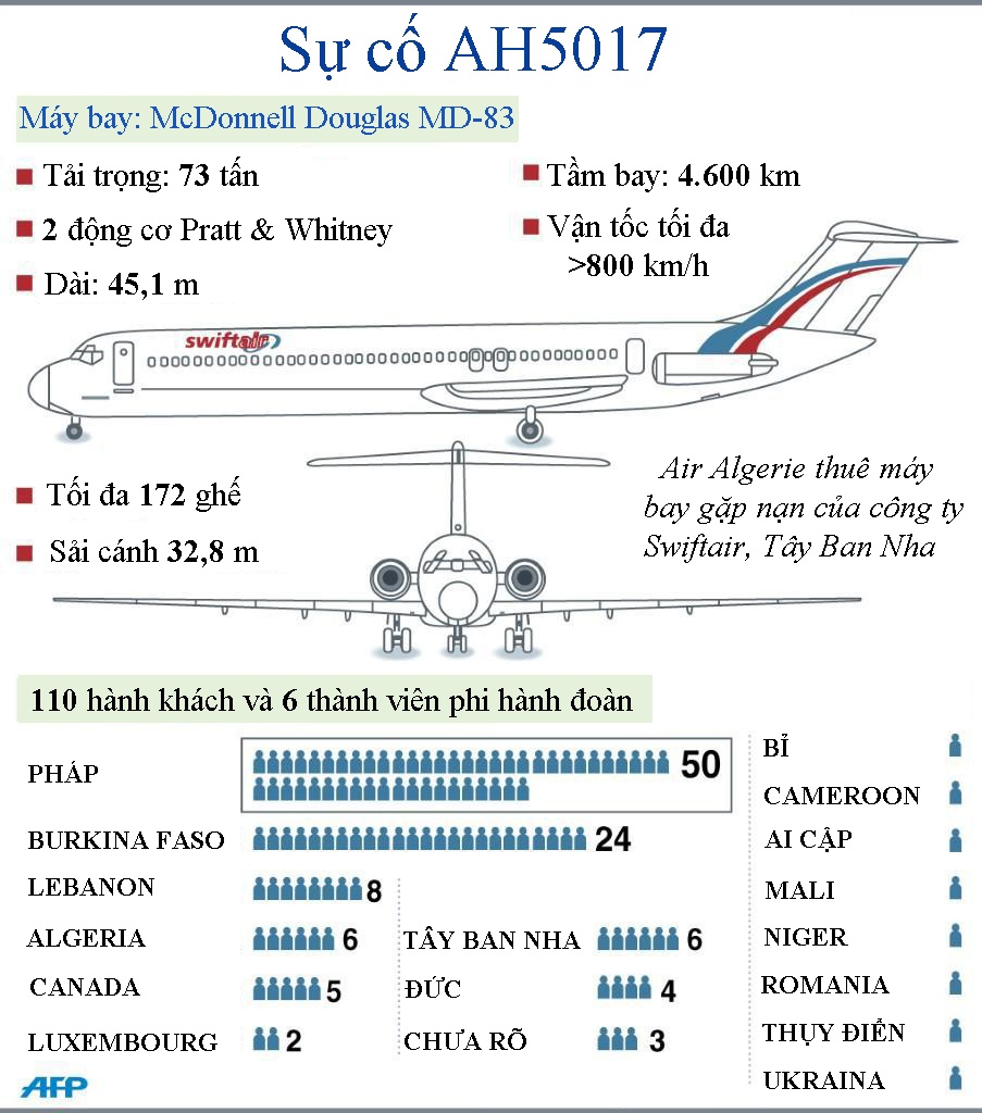 | Toàn cảnh về chiếc máy bay Algeria gặp nạn. Đồ họa: AFP |