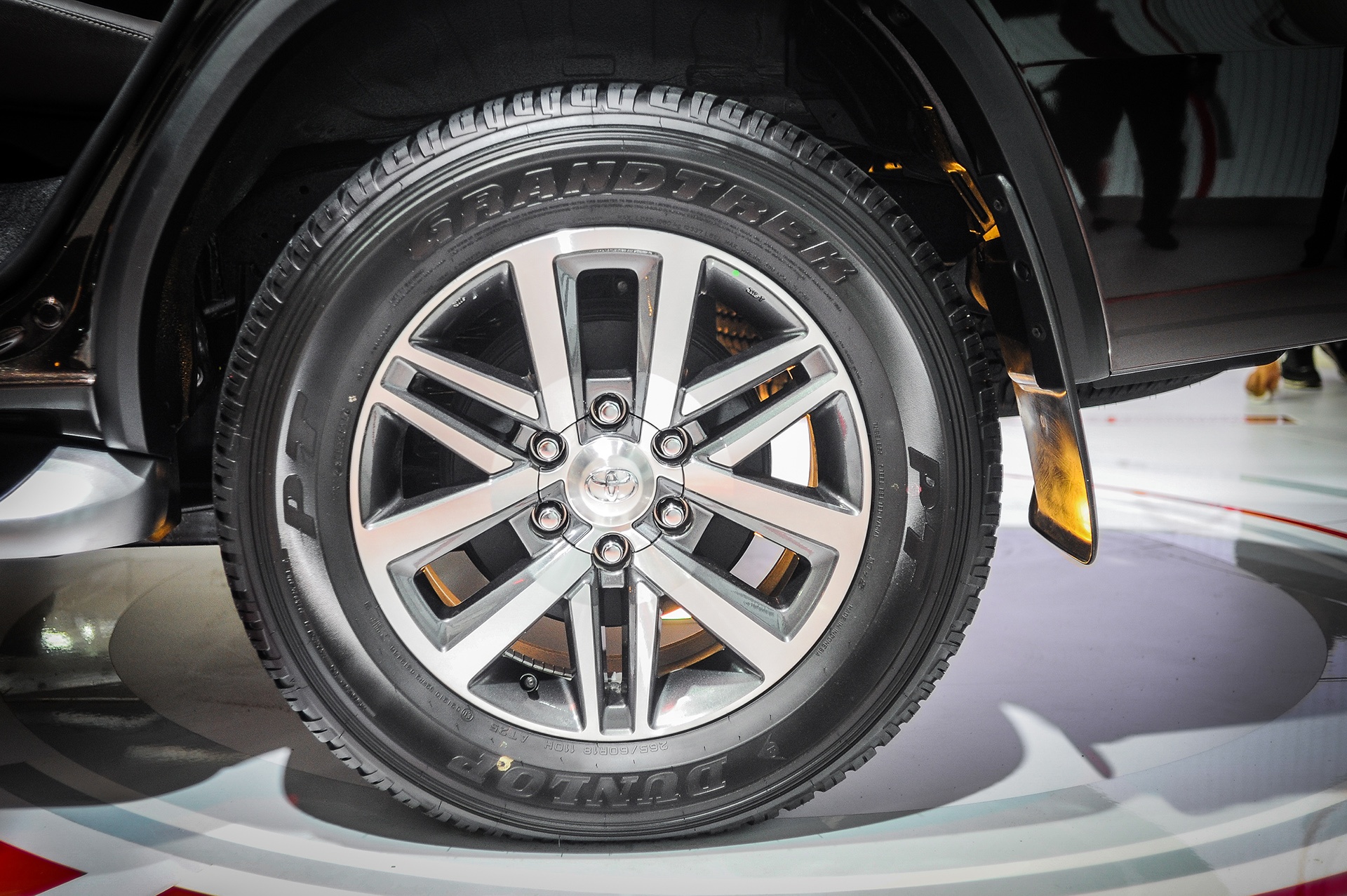 | Fortuner trang bị la-zăng kích thước 18 inch, 6 chấu kép hợp kim. Khoảng sáng gầm xe 219 mm, giảm 1 mm so với thế hệ cũ. |
