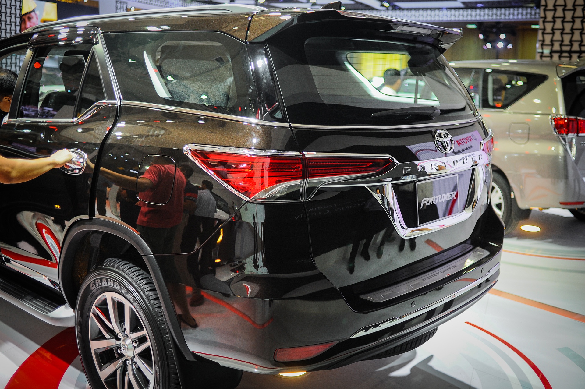 Đuôi xe của Fortuner mới cũng được thiết kế lại hoàn toàn. Cụm đèn hậu kiểu dáng bắt mắt hơn. Kích thước dài, rộng, cao của xe lần lượt là 4.795 x 1.855 x 1.835 mm. Trục cơ sở xe ở mức 2.750 mm. So với thế hệ trước, Fortuner mới dài và rộng hơn, tuy nhiên chiều cao giảm 1 mm.