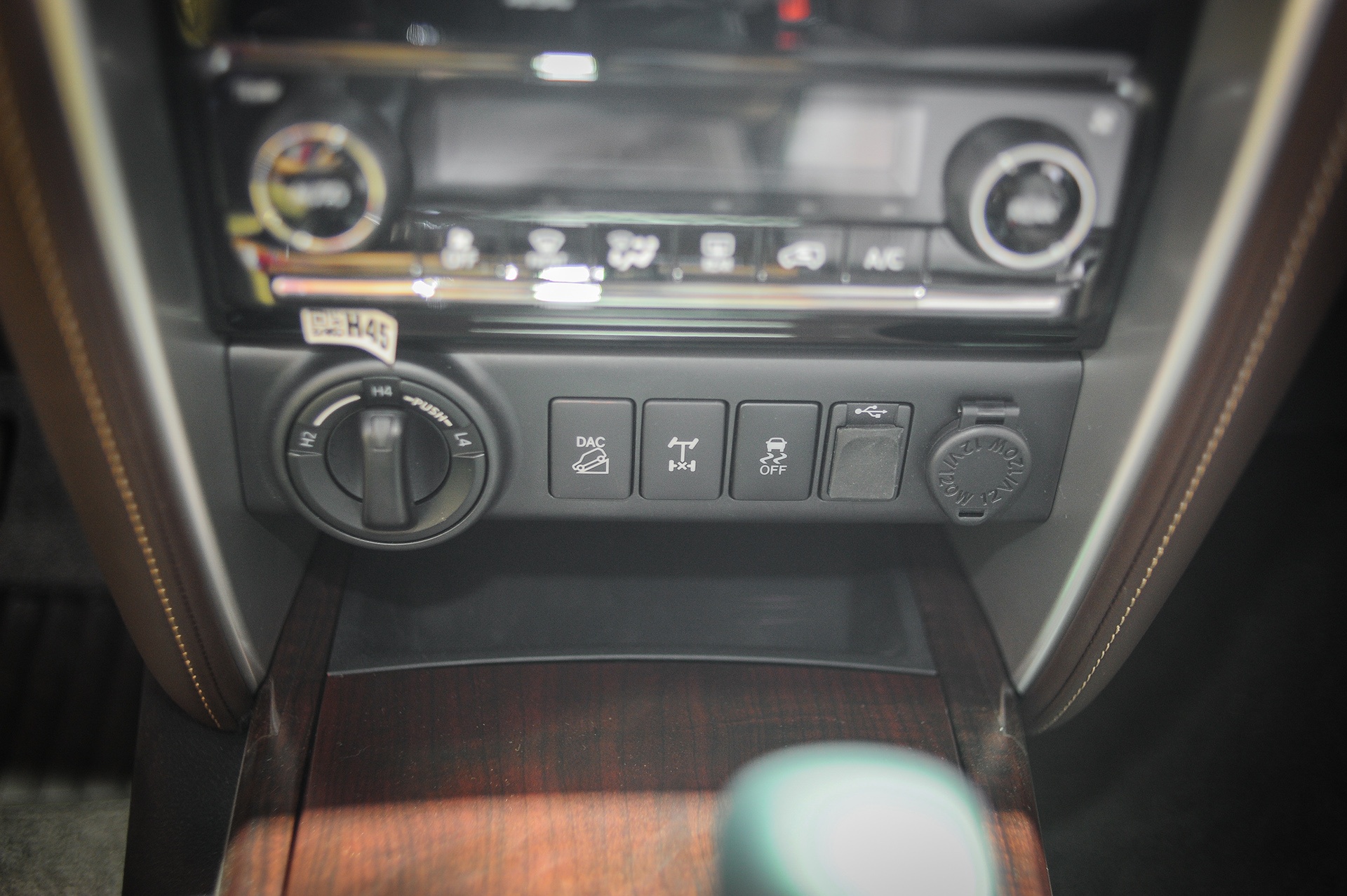 | Khu vực cần số được thiết kế lại, ốp gỗ khá cao cấp. Tương tự Innova 2016, Fortuner 2017 cũng có 2 chế độ lái Eco mode và Power mode, lựa chọn thông qua nút bấm. |