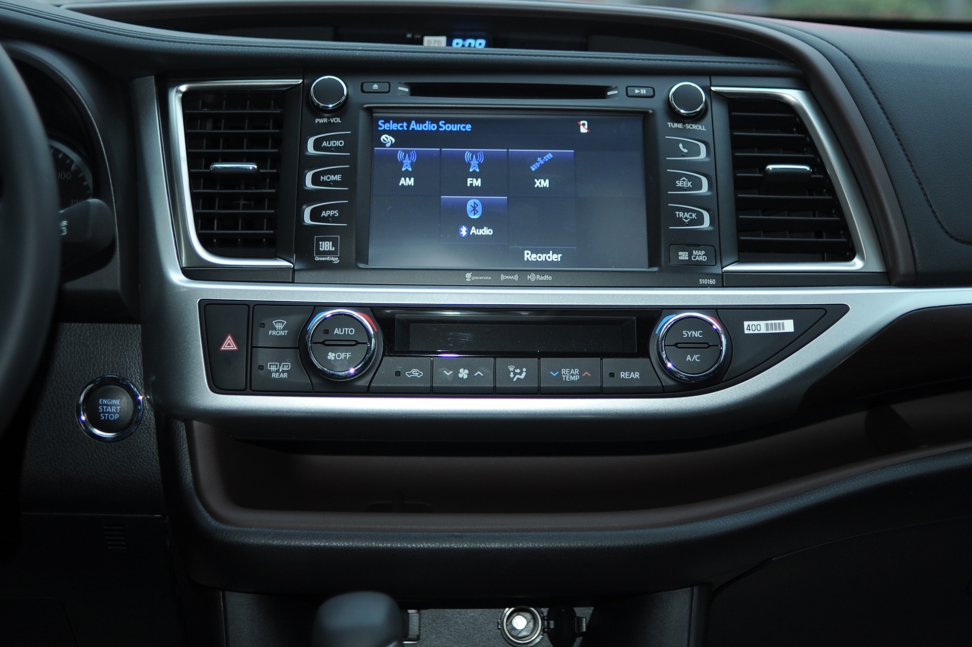 | Hệ thống thông tin giải trí của Highlander 2016 tích hợp nhiều kết nối, màn hình cảm ứng 8 inch, điều hoà tự động 2 vùng độc lập, có cửa gió điều hoà cho hàng ghế phía sau. Hệ thống âm thanh cao cấp JBL 12 loa. |