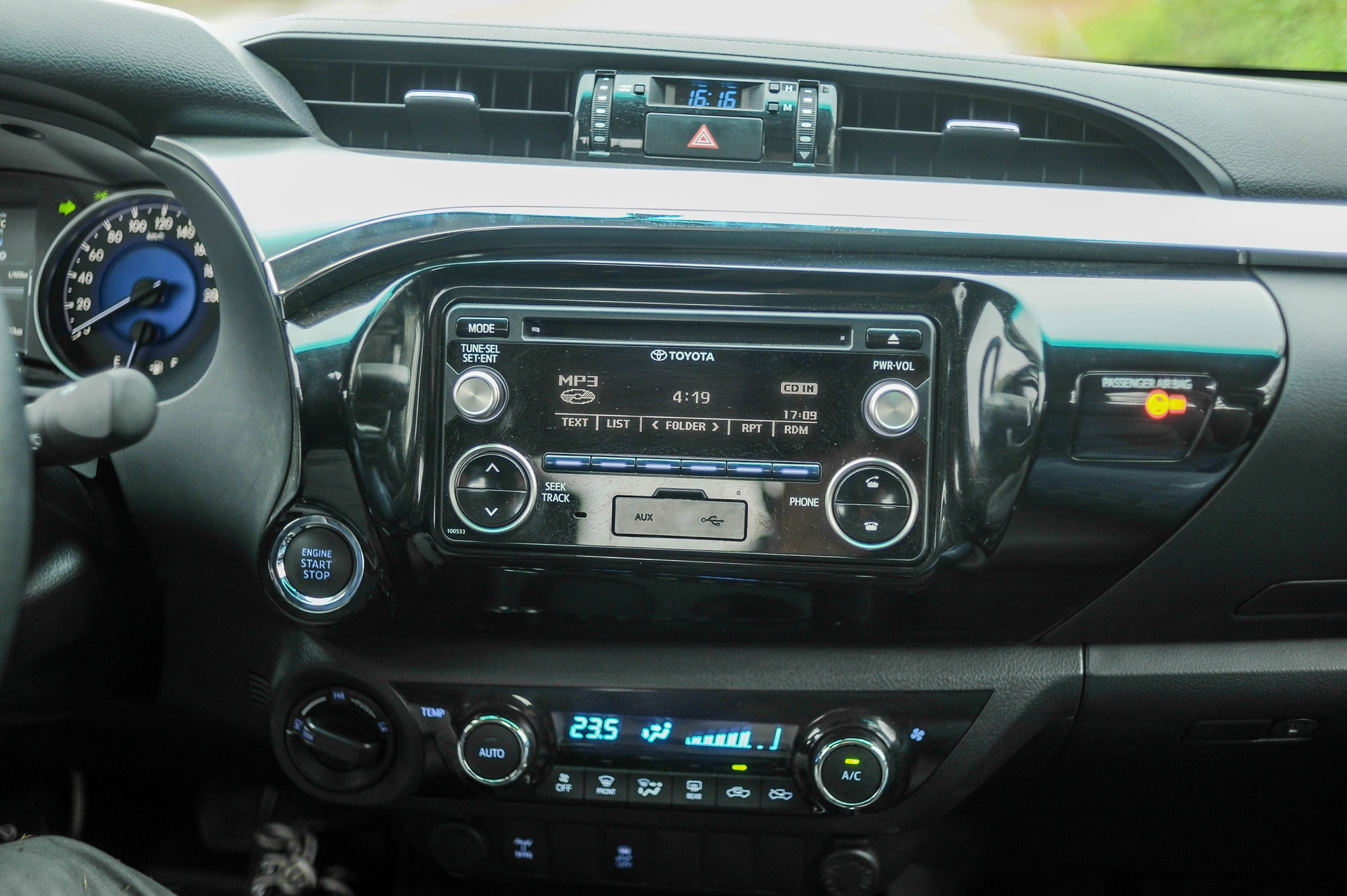 Trong khi đó, không gian nội thất của Hilux 3.0G AT được thiết kế lại mang đến cảm giác hiện đại và cũng có phần sang trọng không kém. Hệ thống giải trí trên xe gồm đầu CD 1 đĩa, các kết nối USB, AUX, Bluetooth. Phía ghế hành khách trước còn được trang bị một hộc đồ có khả năng làm lạnh.