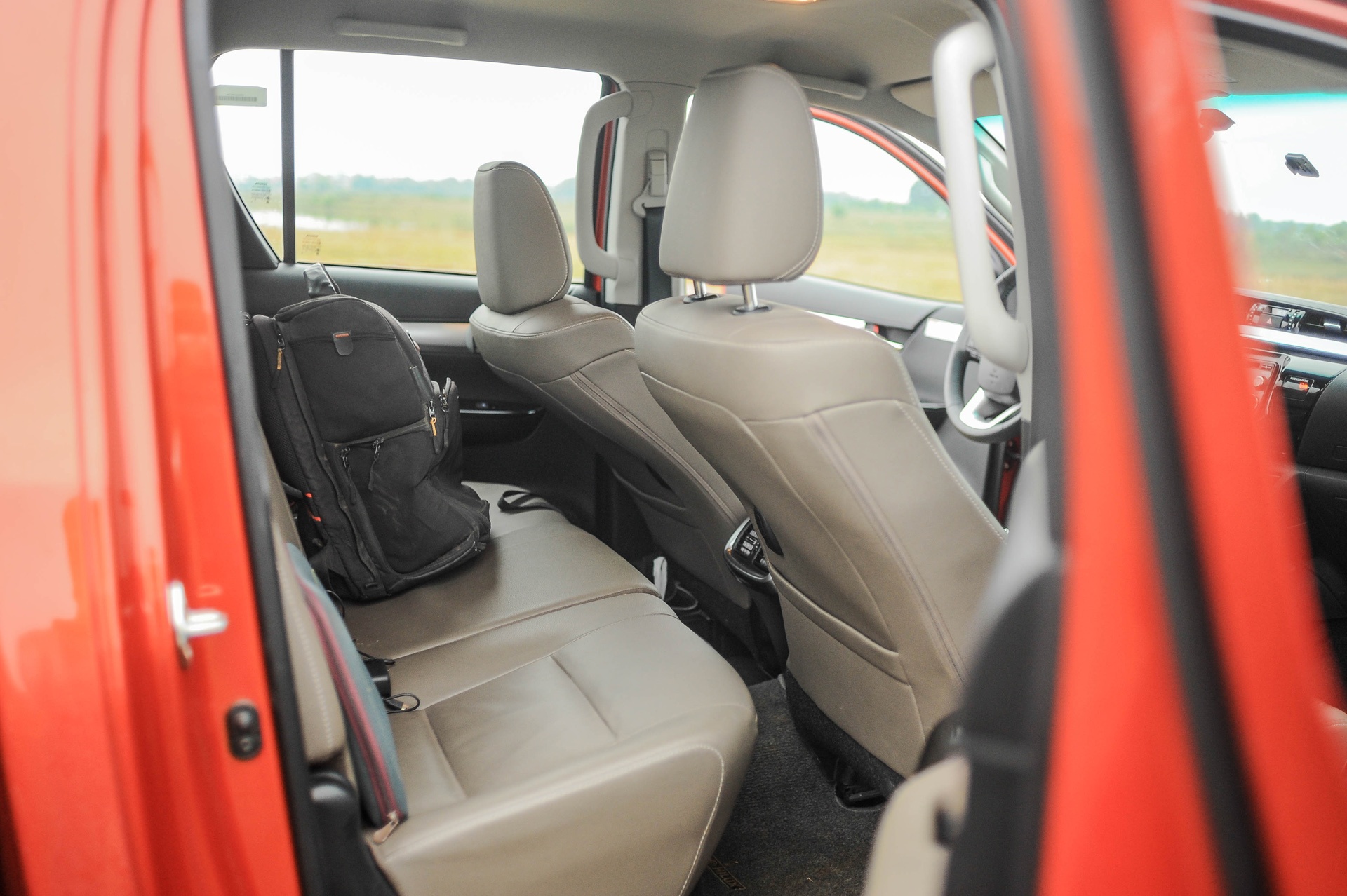 Toàn bộ nội thất được bọc da mềm mại. Không gian cho hàng ghế phía sau khá rộng rãi. Hilux 3.0G AT được trang bị cửa gió điều hòa cho hàng ghế sau.