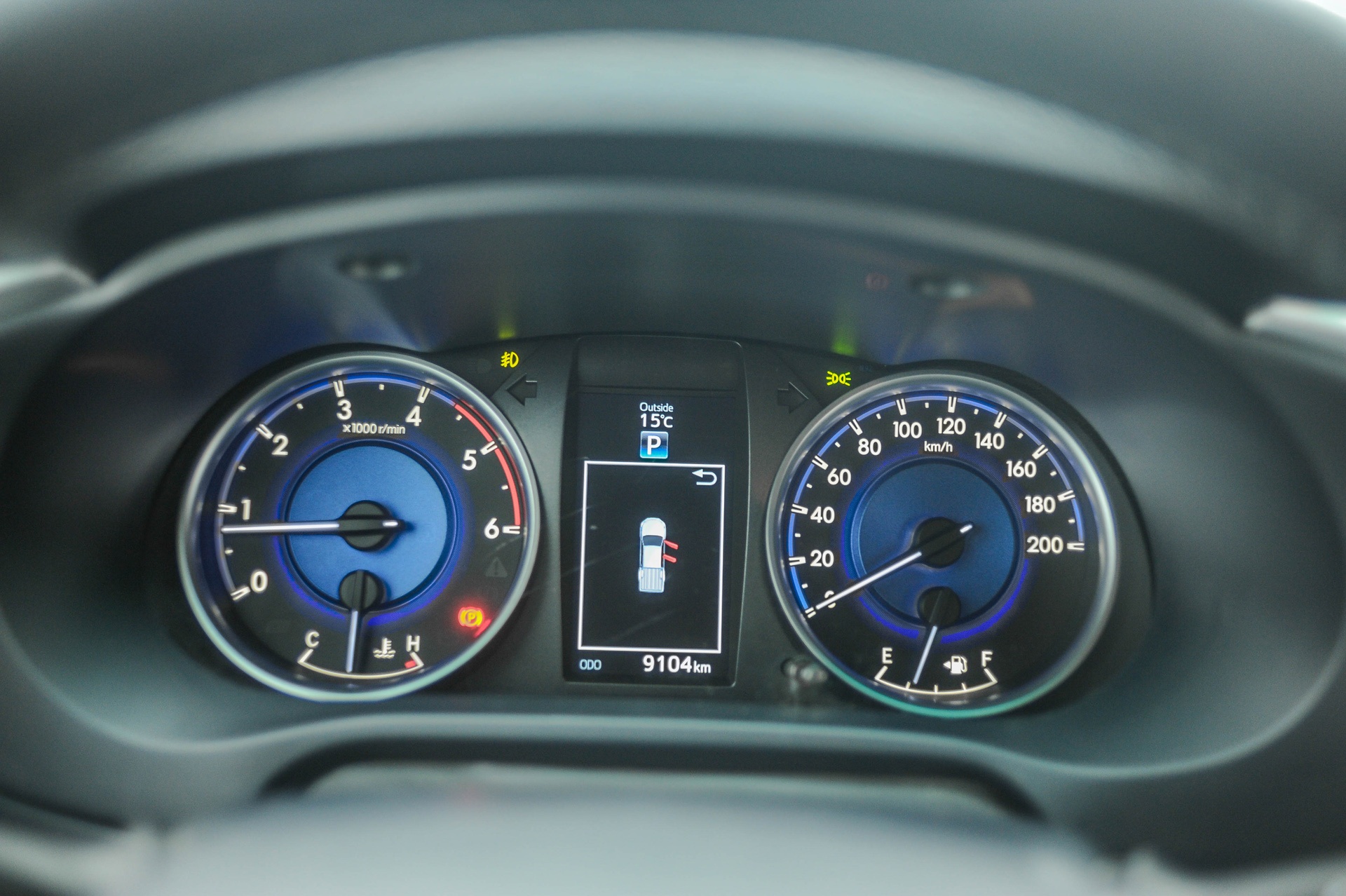 Cụm đồng hồ hiển thị gồm 2 màn hình analog và một màn hình điện tử hiển thị nhiều thông tin cần thiết cho người điều khiển như ODO, mức tiêu hao nhiên liệu, các cảnh báo an toàn khác...