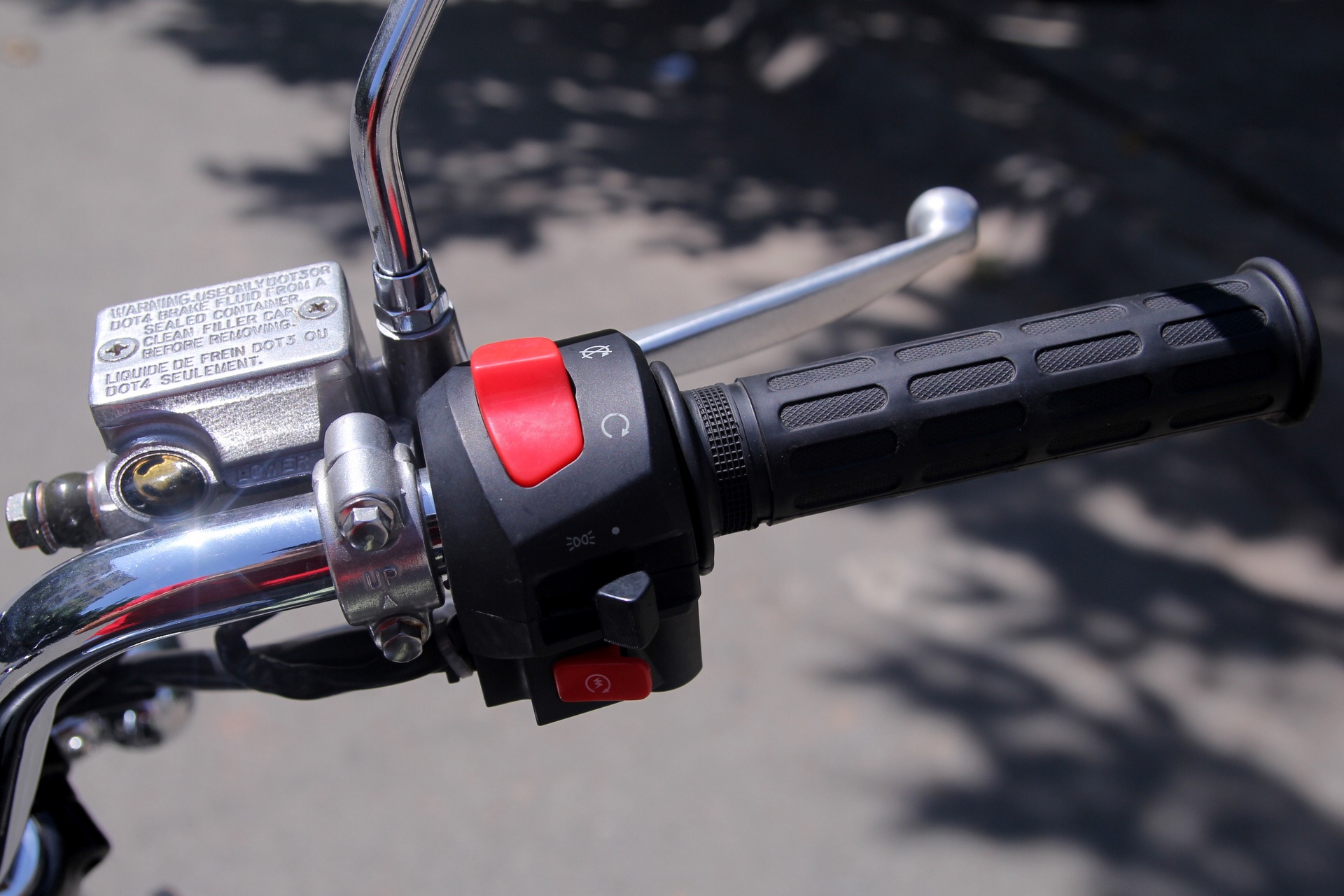 Cụm công tắc bên trái đơn giản, bao gồm công tắc đèn chiếu xa gần, xi-nhan, còi.