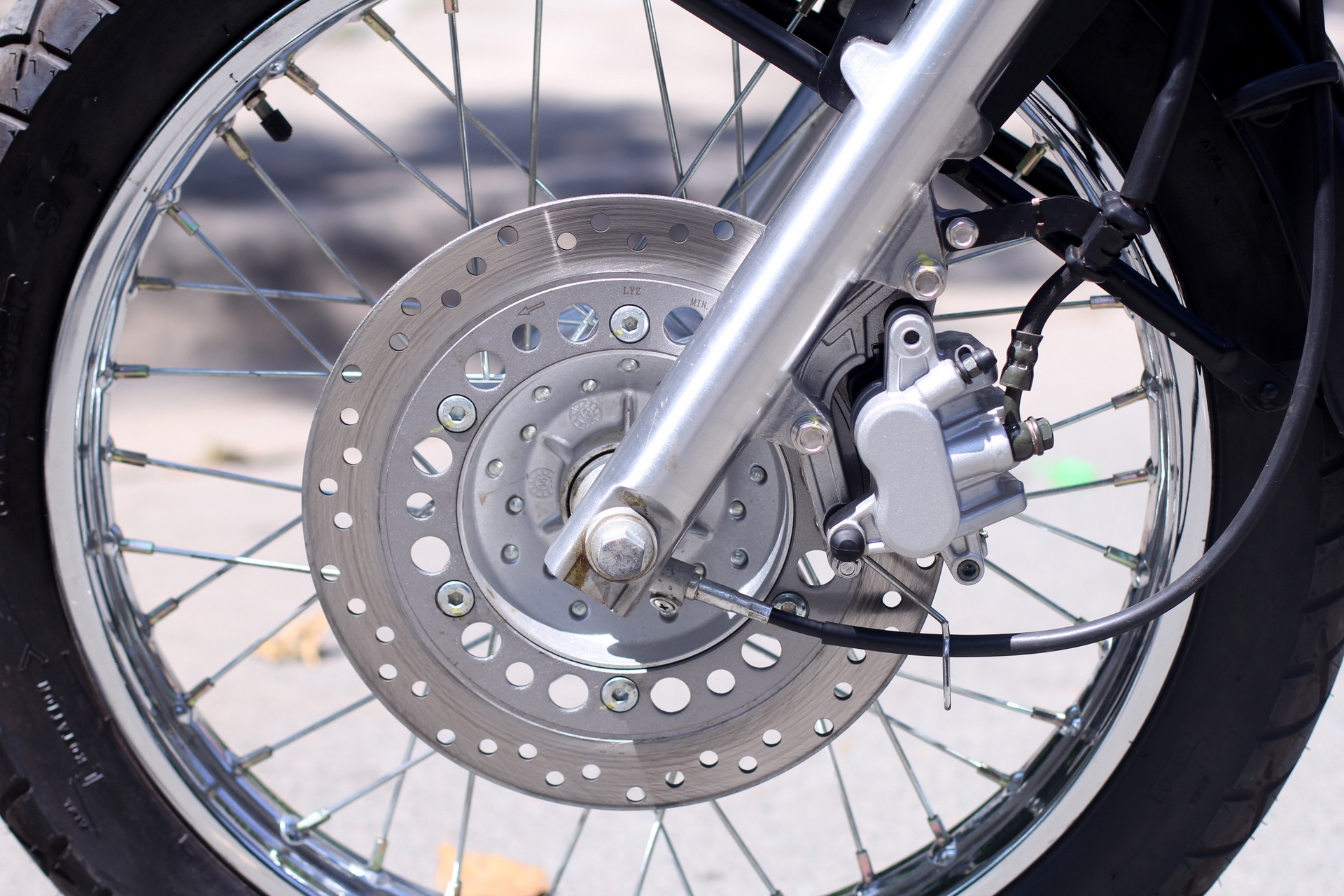 Phía trước sử dụng thắng đĩa hai piston, trong khi phía sau dùng phanh tang trống.