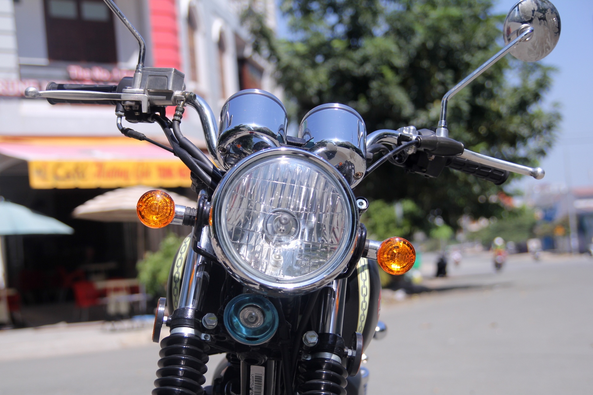 Cụm đèn pha phía trước chiếu sáng bằng bóng halogen. Cả gương chiếu hậu, đèn pha, xi-nhan đều hình tròn.