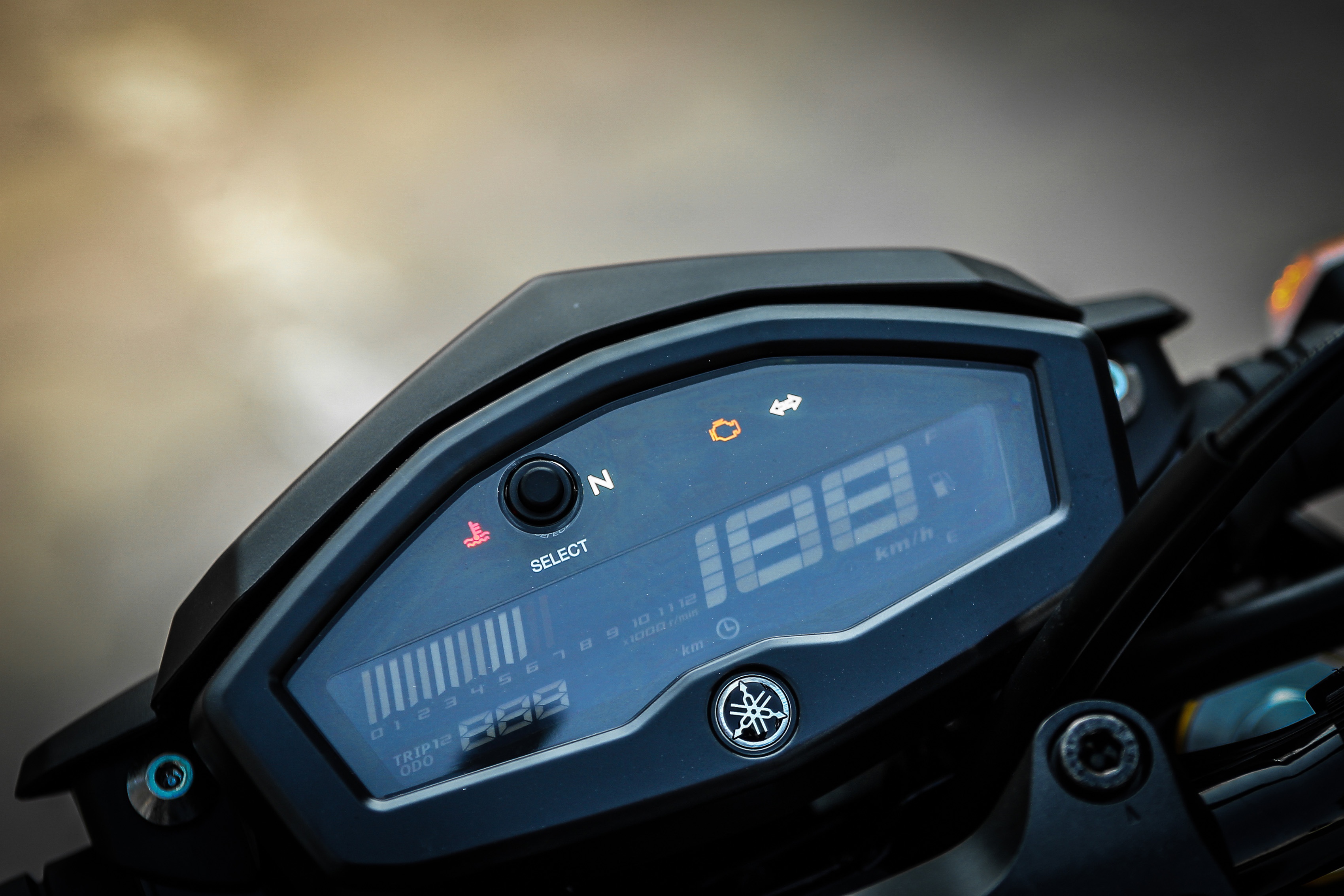 | Cụm đồng hồ hiển thị trên M-Slaz dùng màn hình điện tử toàn bộ. Thiết kế cụm đồng hồ khác biệt hoàn toàn so với những mẫu xe của dòng MT-Series. |