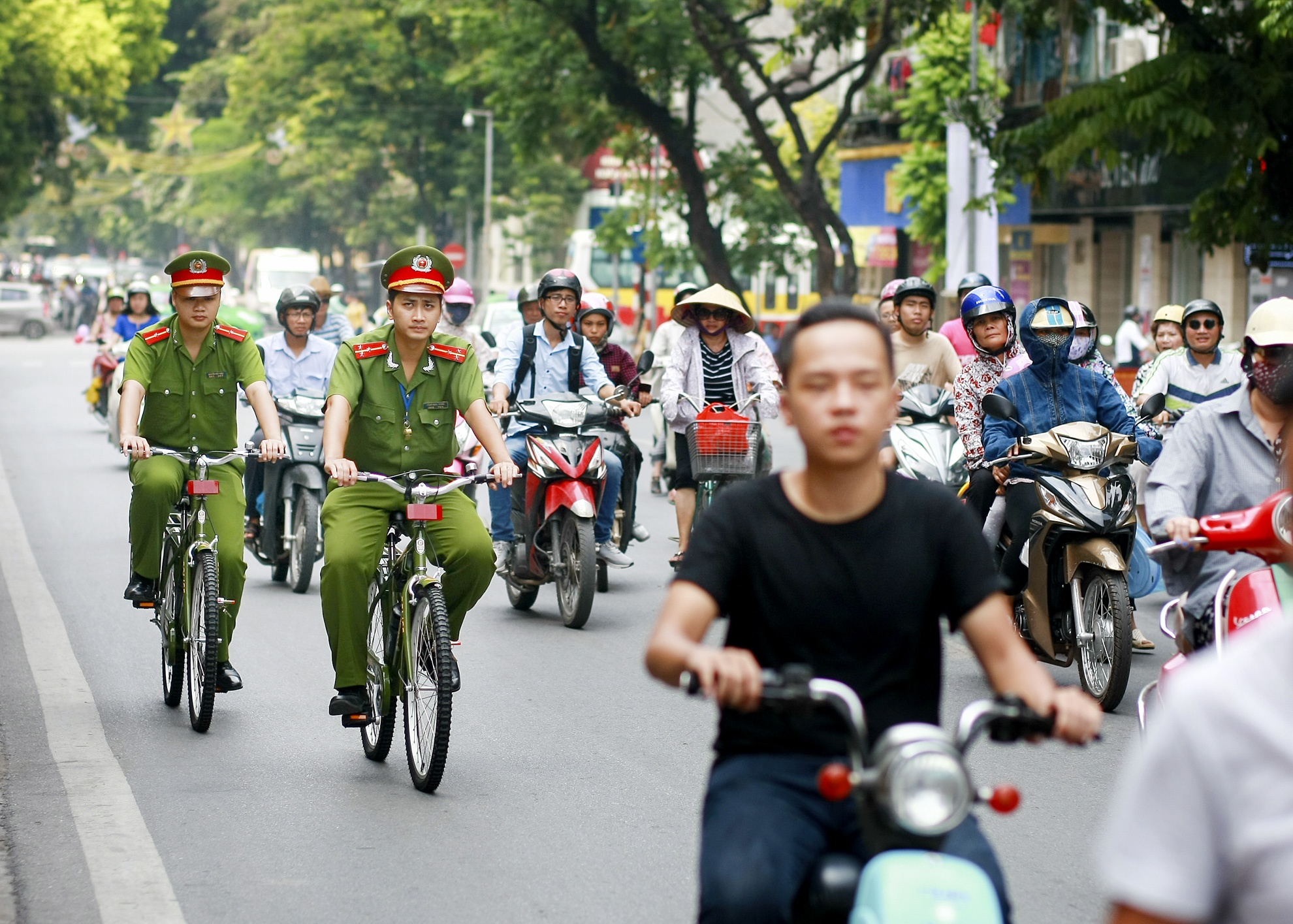 Lực lượng cảnh sát trật tự của 12 phường thuộc 12 quận địa bàn thủ đô vừa được cấp xe đạp để thuận tiện trong việc đi tuần tra vào các ngõ ngách khu dân cư.