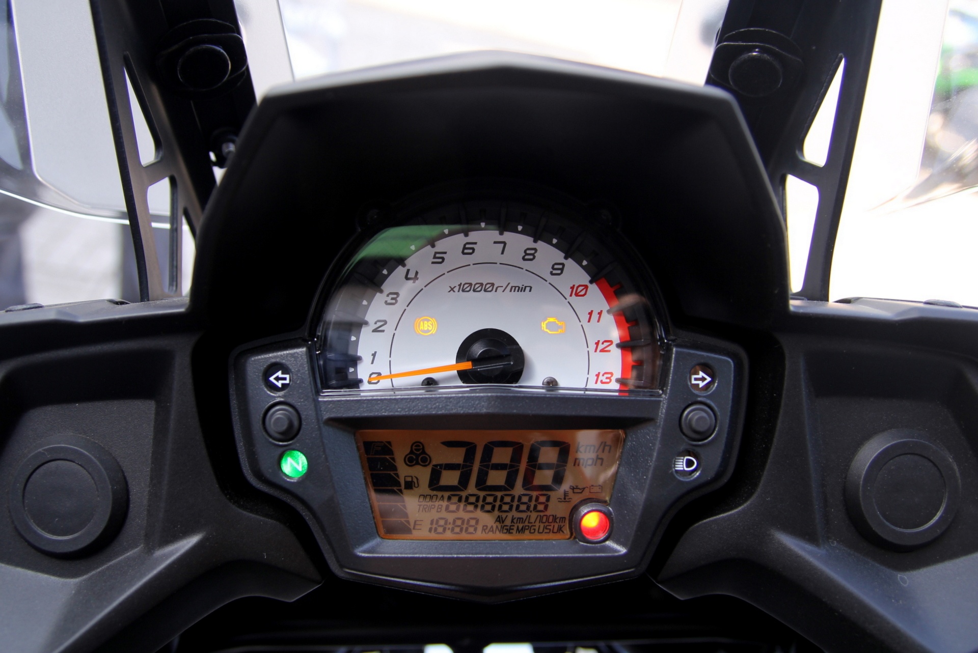 | Bảng điều khiển trung tâm kết hợp giữa đồng hồ analog báo vòng tua máy và đồng hồ LCD hiển thị các thông số vận tốc hay lượng xăng...