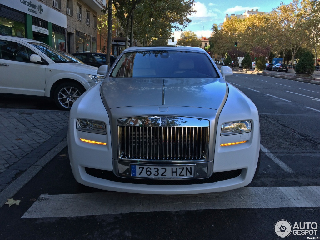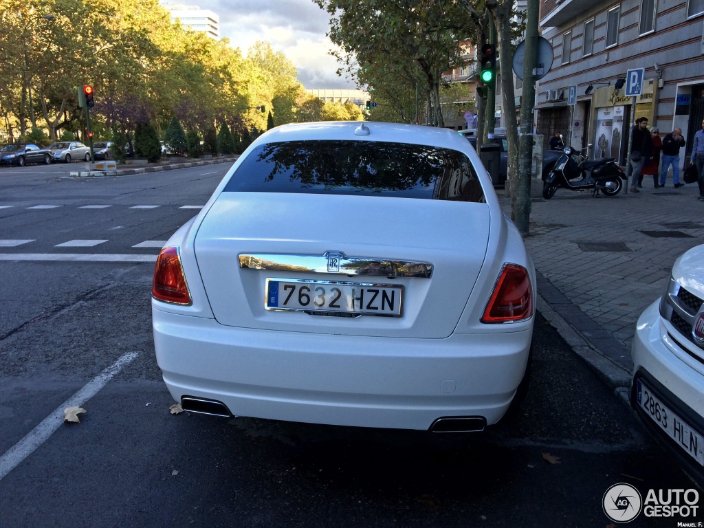Chiếc Rolls-Royce Ghost có chiều dài tổng thể 5.399 mm, chiều rộng 1.948 mm, chiều cao 1.550 mm, trọng lượng khô 2.490 kg. Chiều dài cơ sở 3.295 mm.