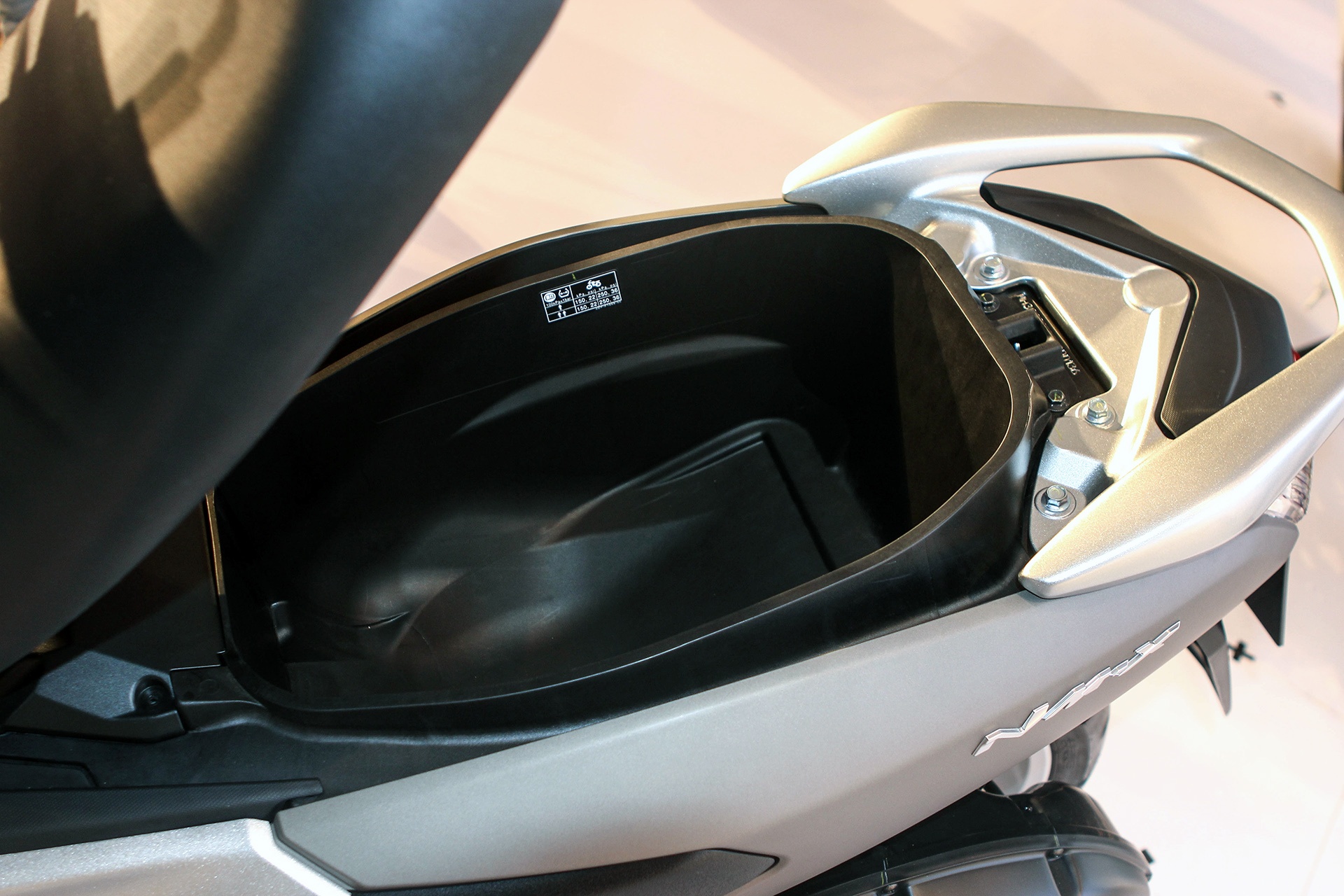 | Phía dưới tay lái, NM-X được bố trí hộc chứa đồ nhỏ. Ổ khoá đa năng, tích hợp mở yên xe. |
