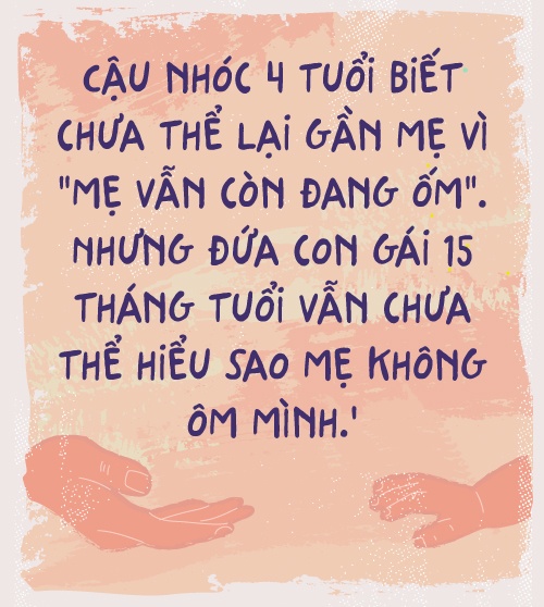 "Được rồi. Mẹ hết bệnh rồi", chị Yến vừa dứt câu, đứa nhỏ chạy ào tới sà vào lòng mẹ sau gần 2 tháng xa cách. Đó là cái ôm hạnh phúc nhất trong hơn 4 năm làm mẹ.