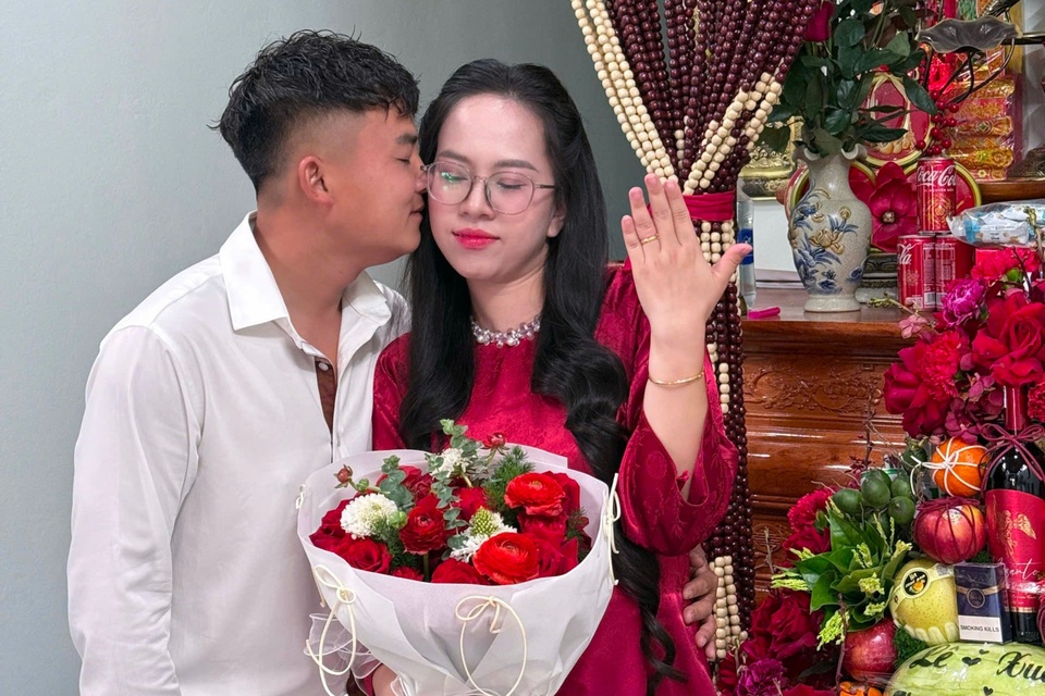 Ngày 28/1, anh Nguyễn Xuân Hoàng (sinh năm 1994) mang trầu cau, rượu, thuốc và sính lễ đến nhà chị Lê Thị Thương (sinh năm 1997, cùng quê Thanh Hóa) để làm lễ ăn hỏi lần hai. Buổi lễ diễn ra trang trọng, đủ nghi thức, không khác gì ngày hai gia đình từng ngồi lại cách đây 8 năm.